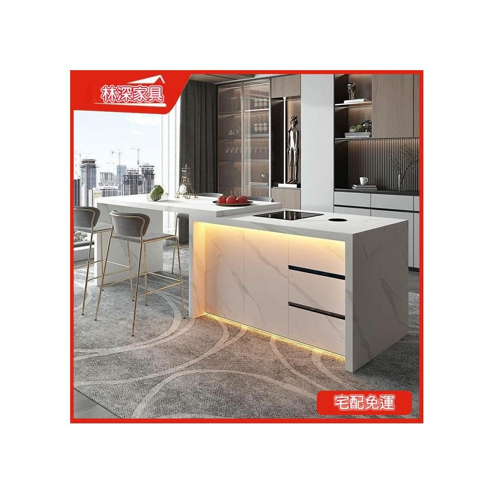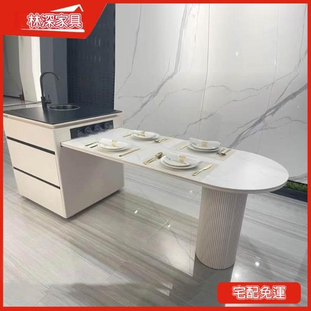 伸縮島臺餐桌一體 巖闆家用開放式廚房吧臺 輕奢小戶型餐廳(中島/中島餐桌/吧台桌/中島桌/中島櫃)