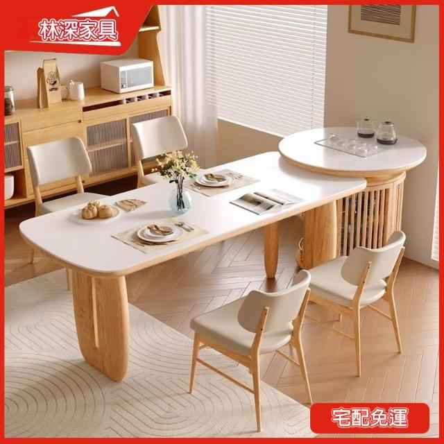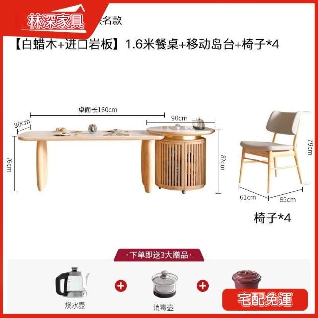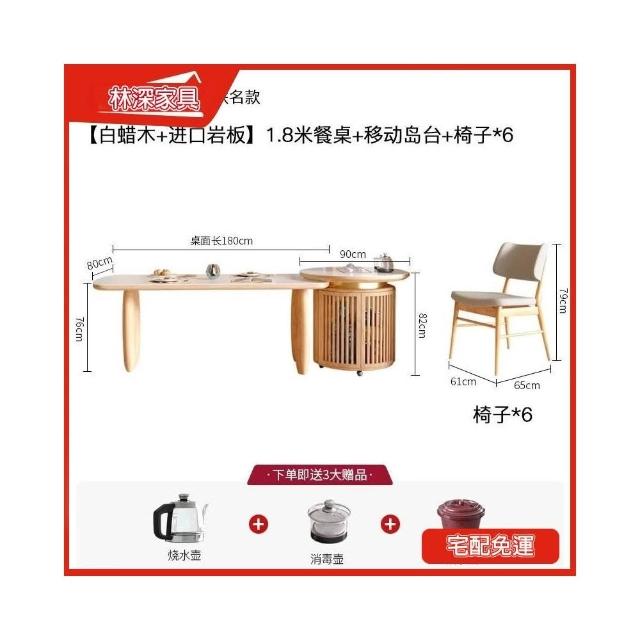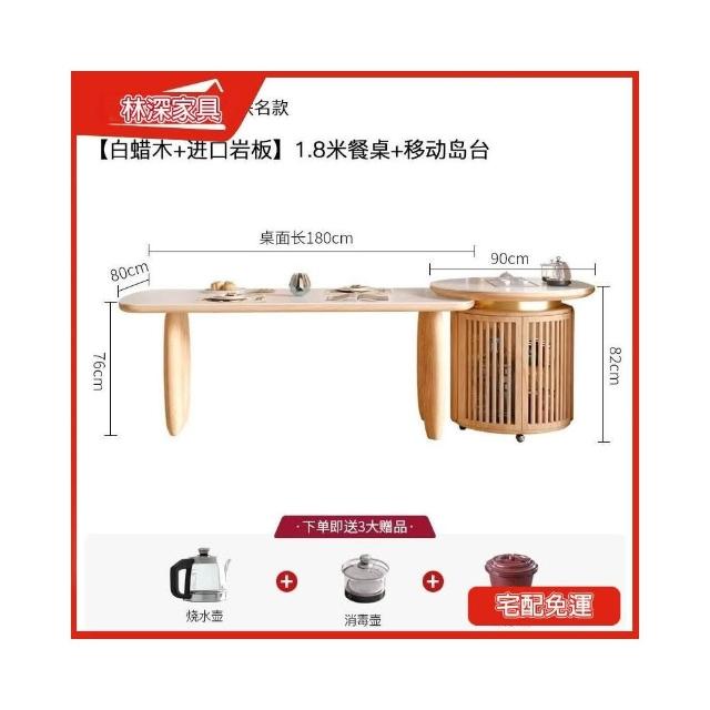 島臺餐桌巖闆島臺餐桌茶桌一體 白蠟木實木北歐風格帶移動茶臺(中島/中島餐桌/吧台桌/中島桌/中島櫃)