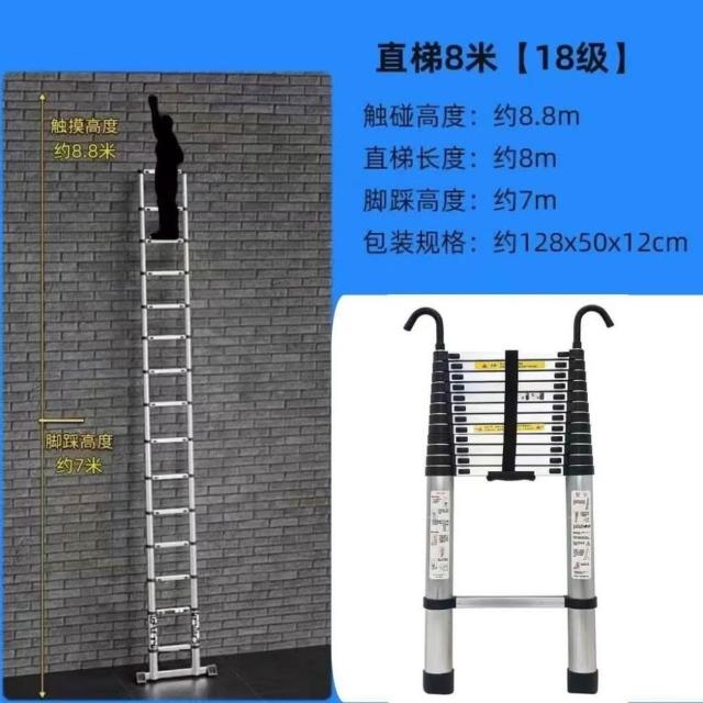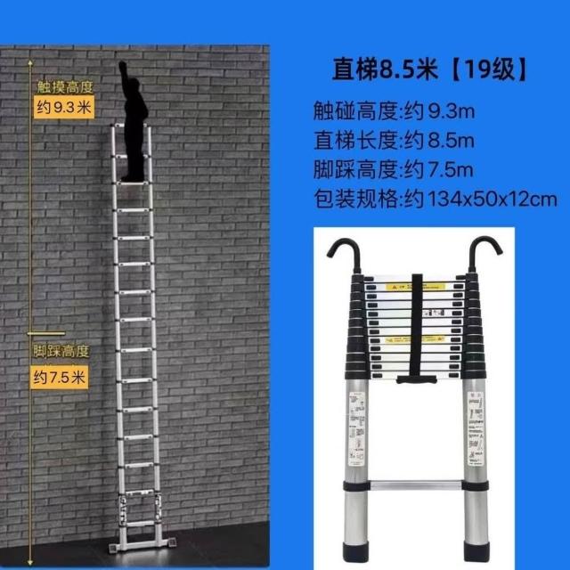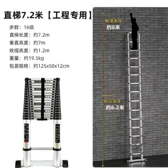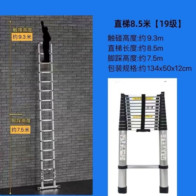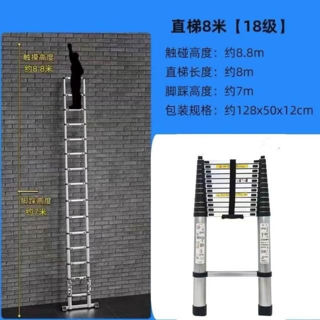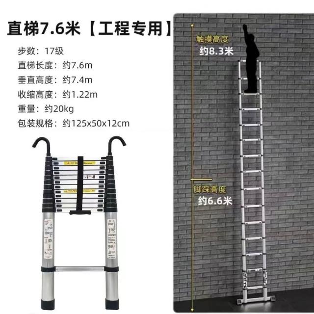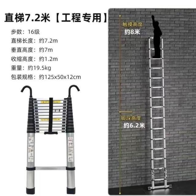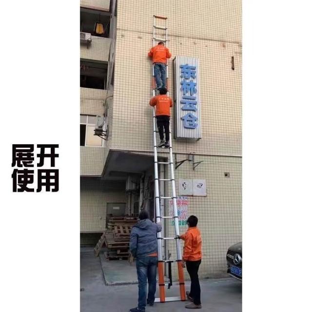 加厚鋁閤金 78/9米伸縮梯便攜特粗工程帶鈎單邊梯子陞降可收縮梯 (工作梯/人字梯/工具梯/維修梯)