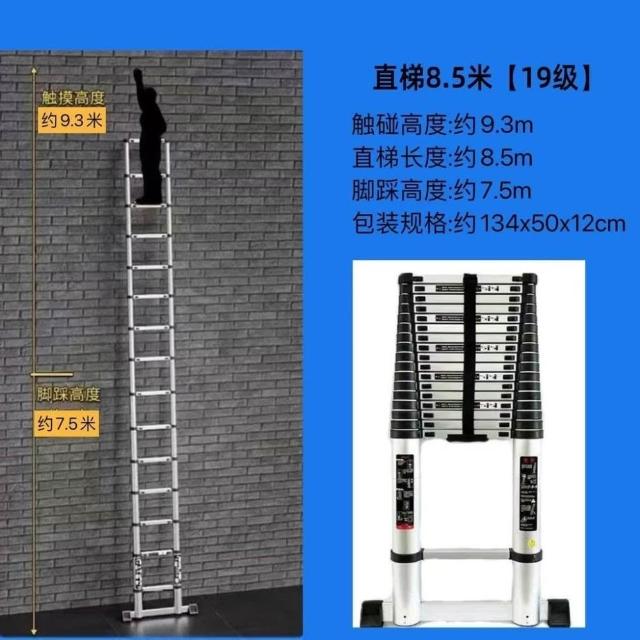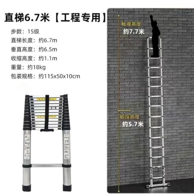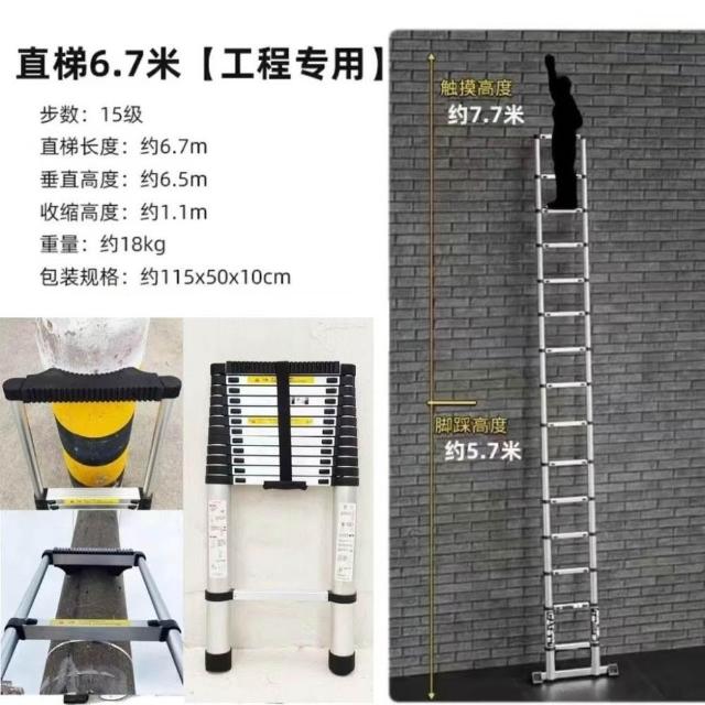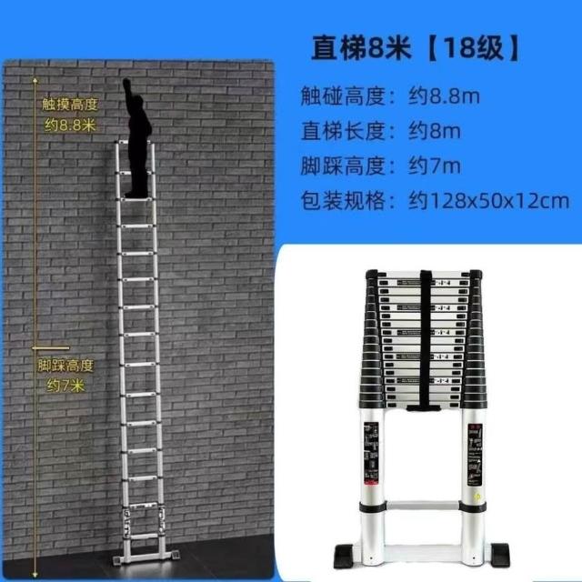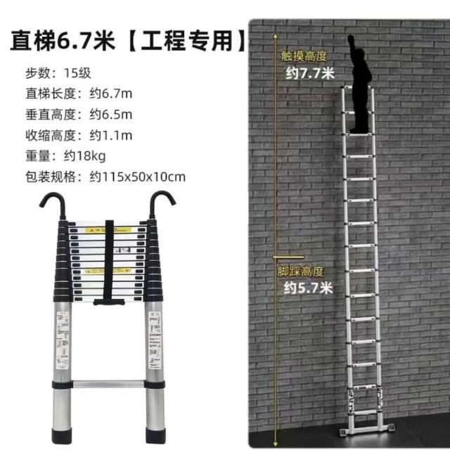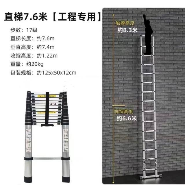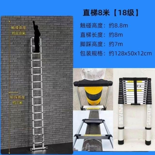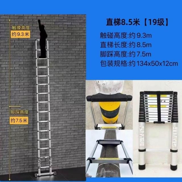 加厚鋁閤金 78/9米伸縮梯便攜特粗工程帶鈎單邊梯子陞降可收縮梯 (工作梯/人字梯/工具梯/維修梯)
