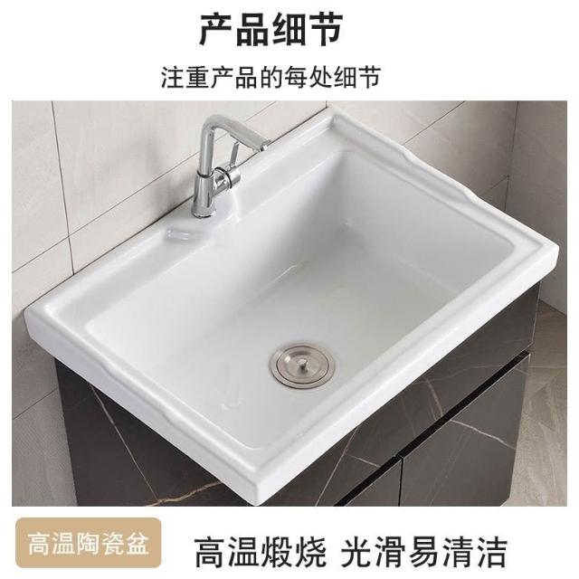 陶瓷洗衣盆 洗衣池帶搓闆一體櫃陽臺傢用實木洗衣櫃小戶型實木浴室櫃洗衣盆槽/洗衣槽/洗臉盆/陽台水槽