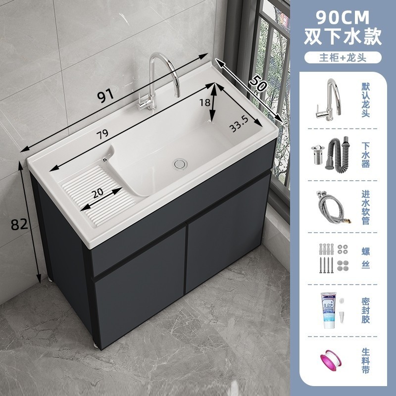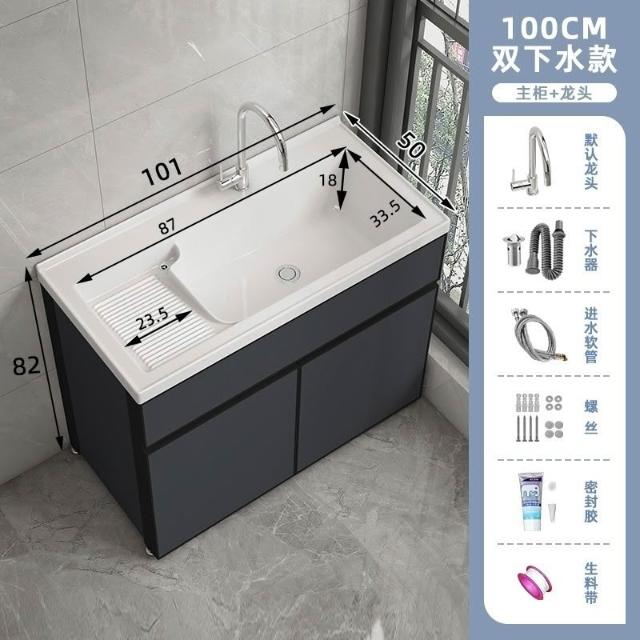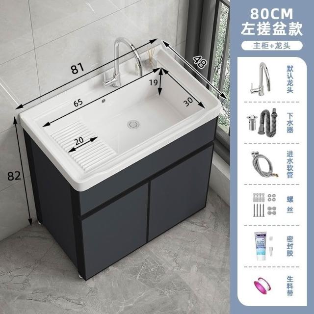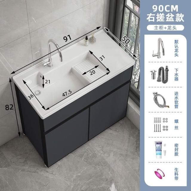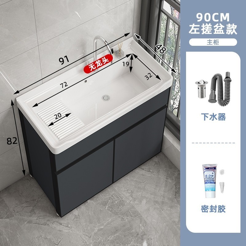 洗衣櫃陽臺盆陶瓷一體洗衣池洗衣臺洗衣槽帶搓衣闆落地浴室櫃(洗衣槽/洗臉盆/浴櫃/洗手台/陽台水槽)