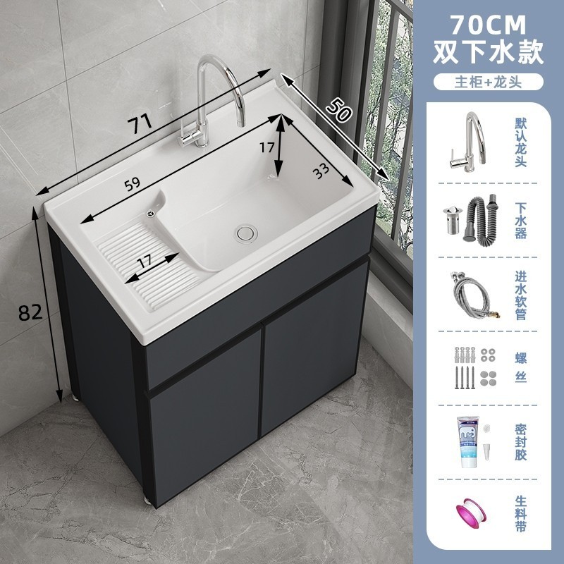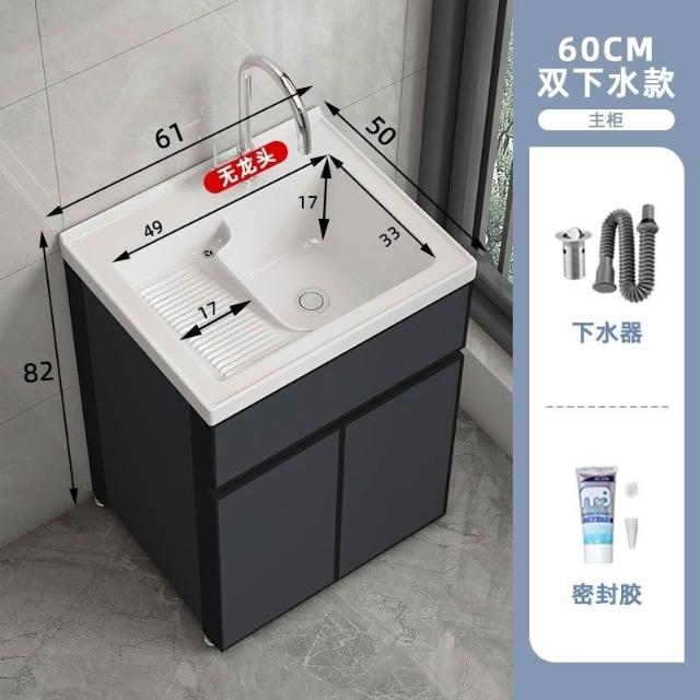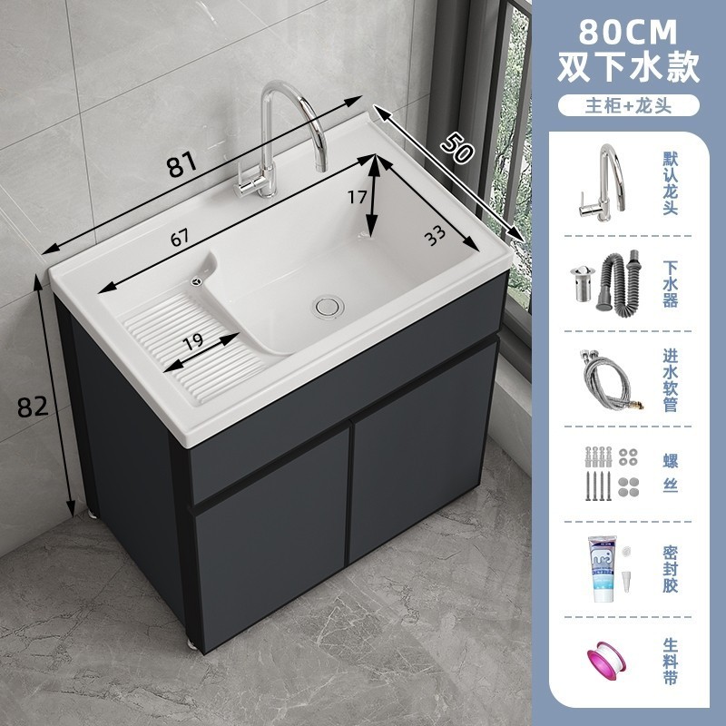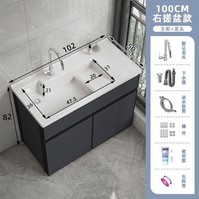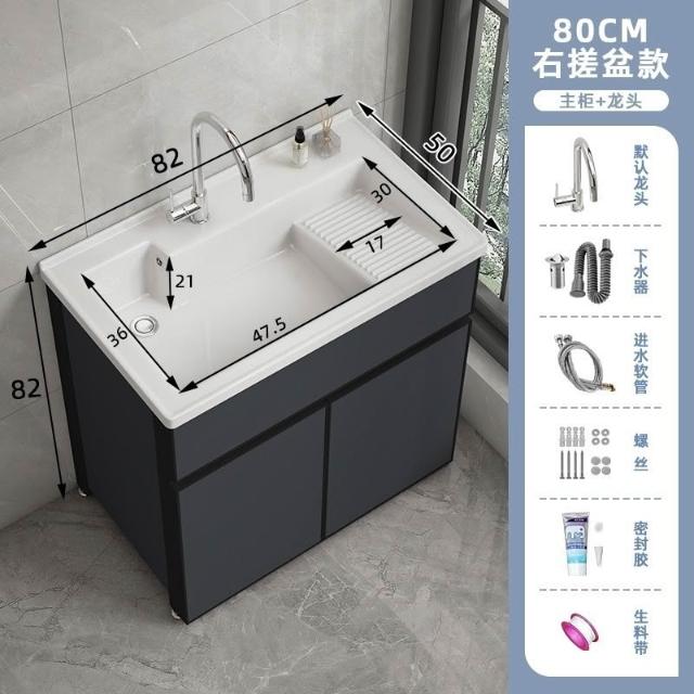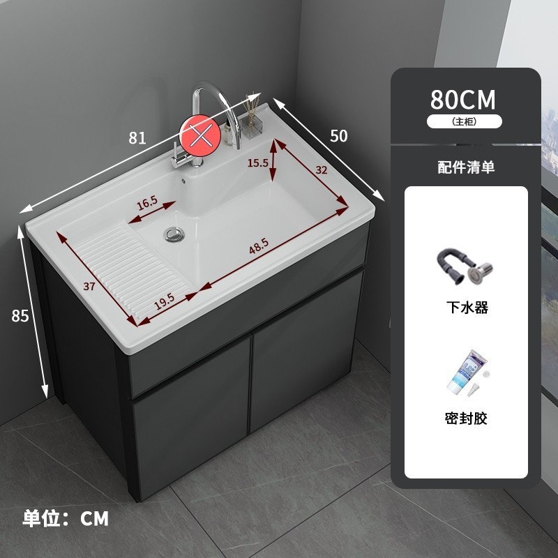洗衣櫃陽臺盆陶瓷一體洗衣池洗衣臺洗衣槽帶搓衣闆落地浴室櫃(洗衣槽/洗臉盆/浴櫃/洗手台/陽台水槽)
