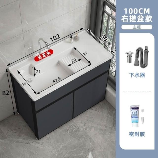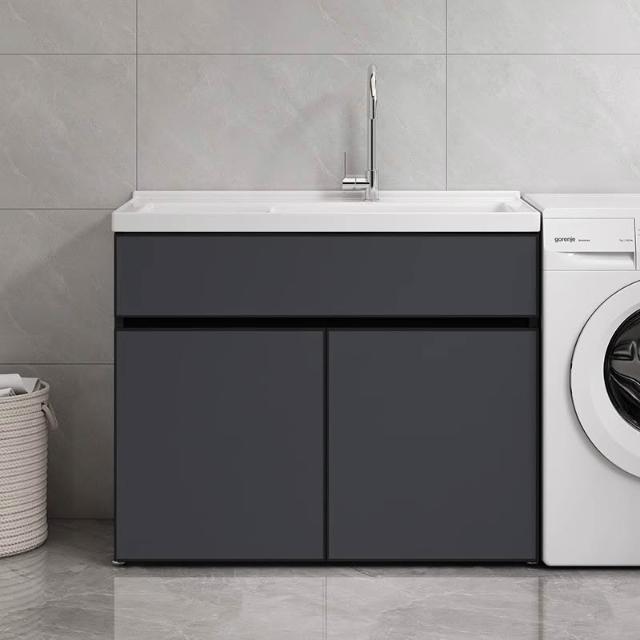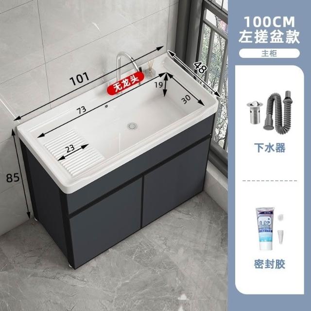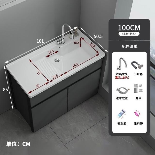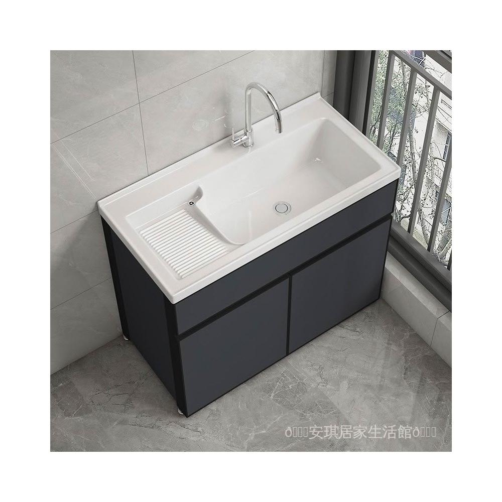 洗衣櫃陽臺盆陶瓷一體洗衣池洗衣臺洗衣槽帶搓衣闆落地浴室櫃(洗衣槽/洗臉盆/浴櫃/洗手台/陽台水槽)