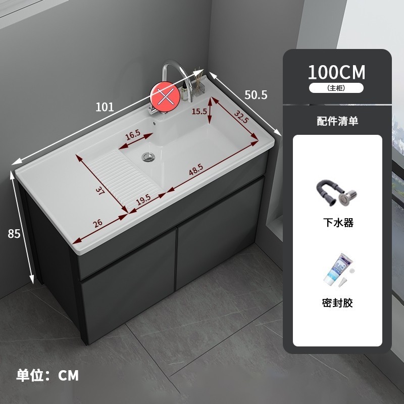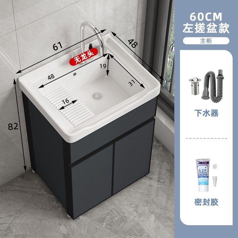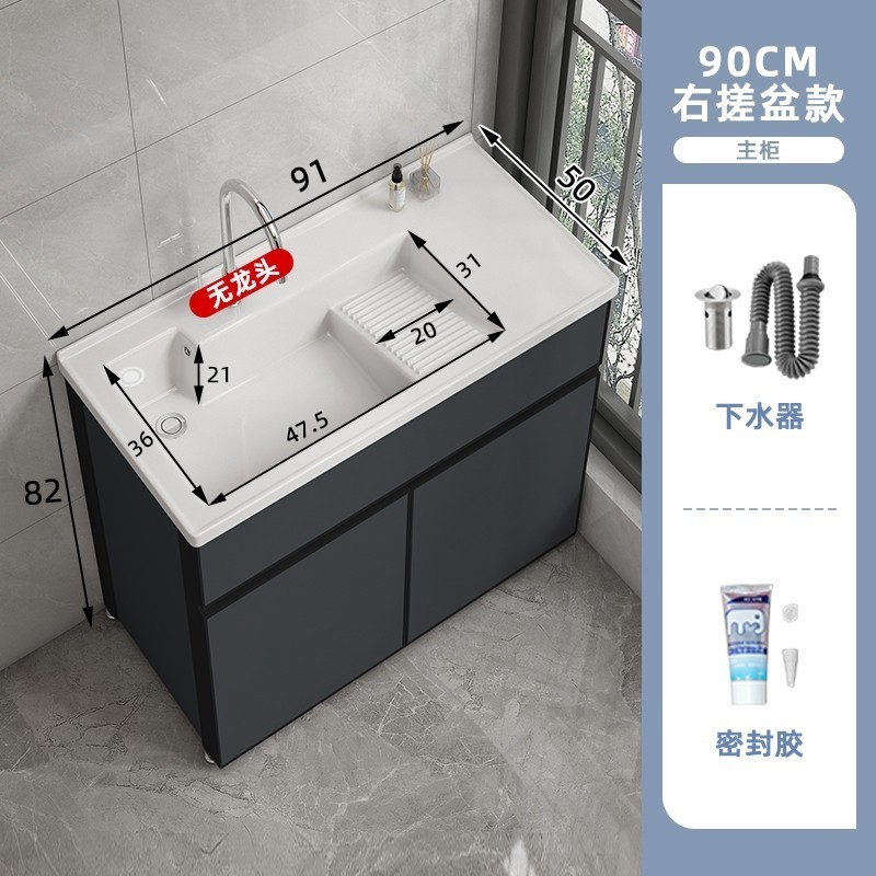 洗衣櫃陽臺盆陶瓷一體洗衣池洗衣臺洗衣槽帶搓衣闆落地浴室櫃(洗衣槽/洗臉盆/浴櫃/洗手台/陽台水槽)
