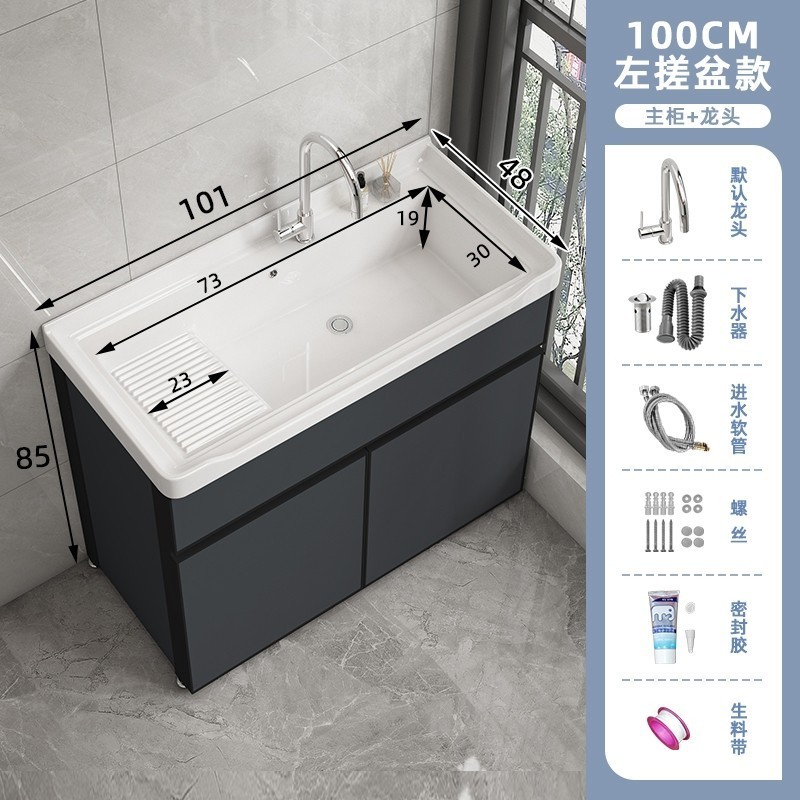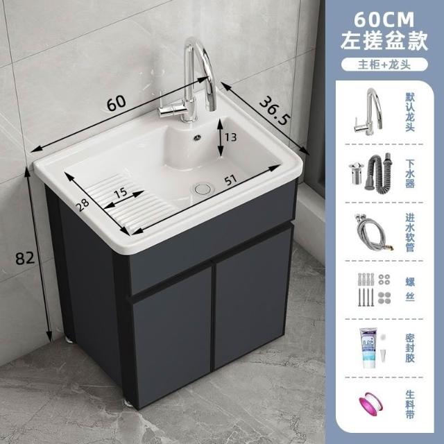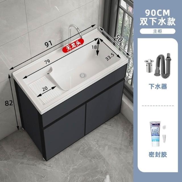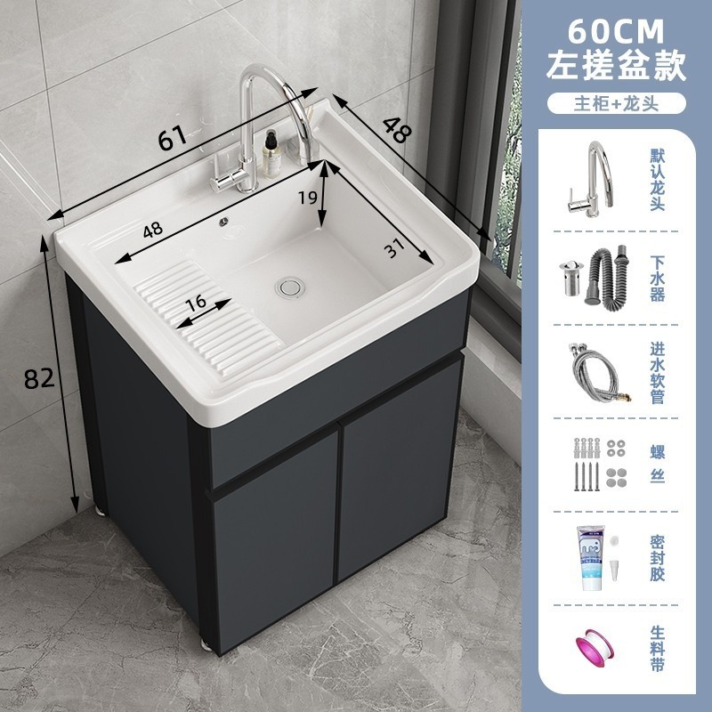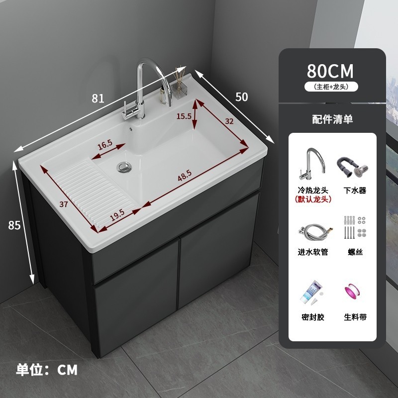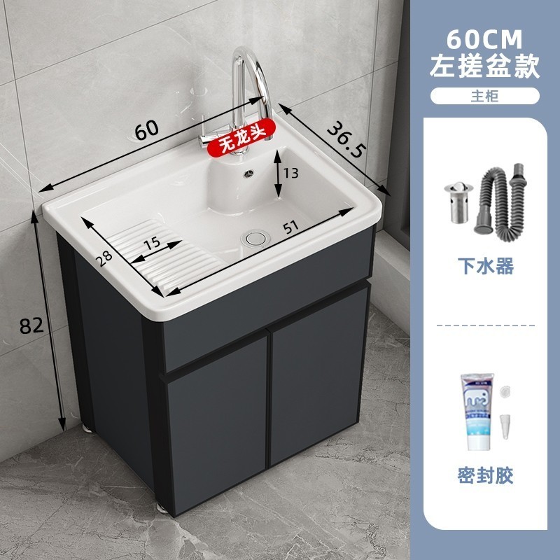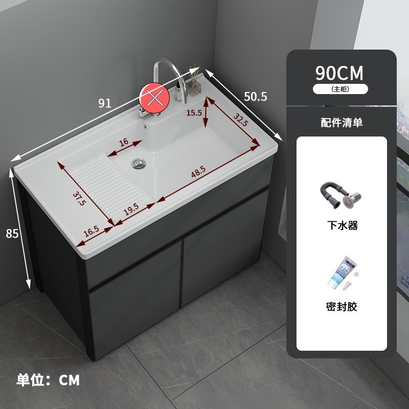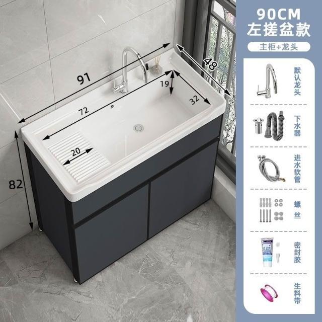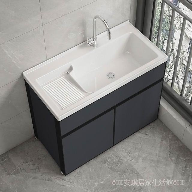 洗衣櫃陽臺盆陶瓷一體洗衣池洗衣臺洗衣槽帶搓衣闆落地浴室櫃(洗衣槽/洗臉盆/浴櫃/洗手台/陽台水槽)