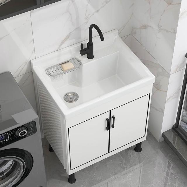 洗衣盆 陽臺洗衣池 落地式陶瓷洗衣槽 太空鋁洗衣櫃組閤(洗衣槽/洗臉盆/浴櫃/洗手台/陽台水槽)