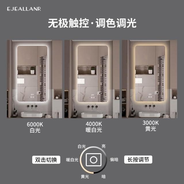 智能鏡子浴室鏡背光方形智能浴室鏡 衛生間鏡子 梳妝鏡 LED燈鏡 浴室鏡 壁掛衛浴鏡 除霧鏡 化妝鏡