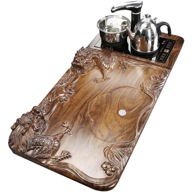 秦藝整套家用實木茶盤輕奢功夫茶具全自動電磁爐一體燒水茶台套裝茶盤 茶几 茶具
