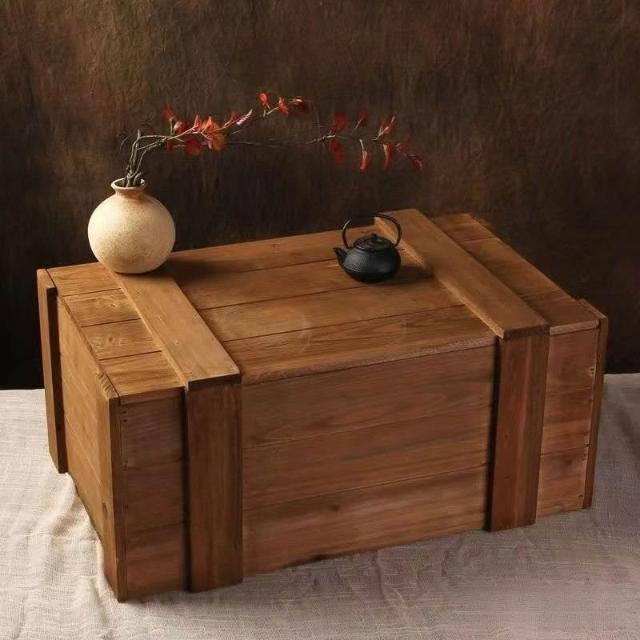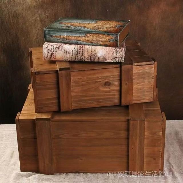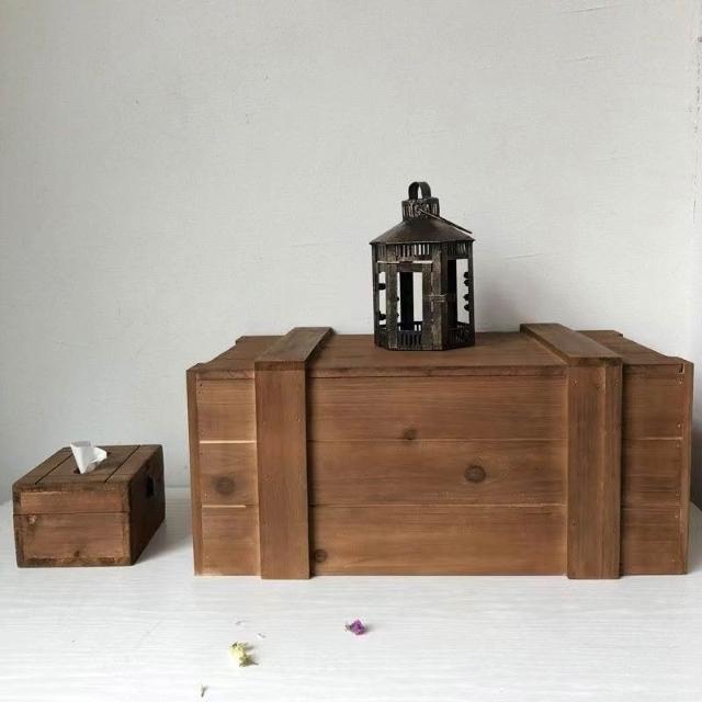 木質收納盒 老式藏寶箱 工業風收納箱 實木帶蓋木盒子 創意裝飾木箱 長方形戶外道具複古木箱