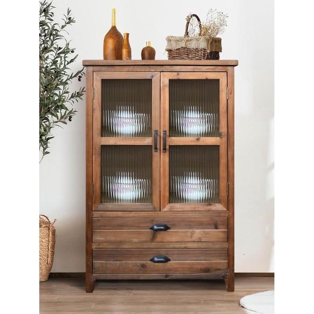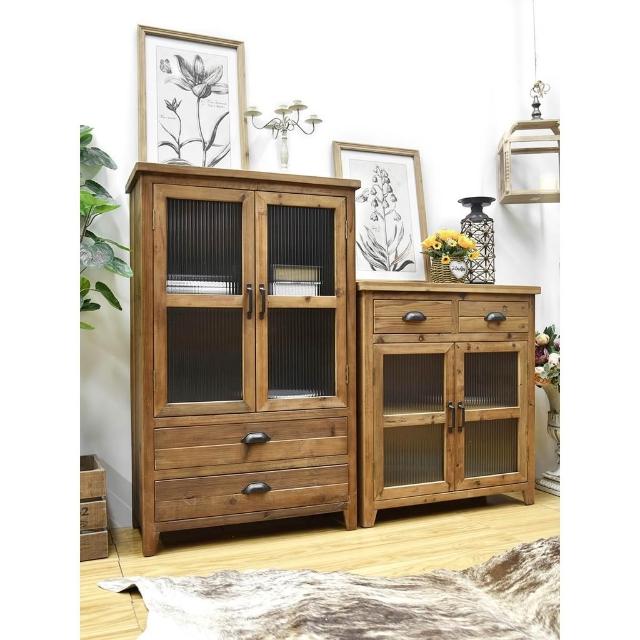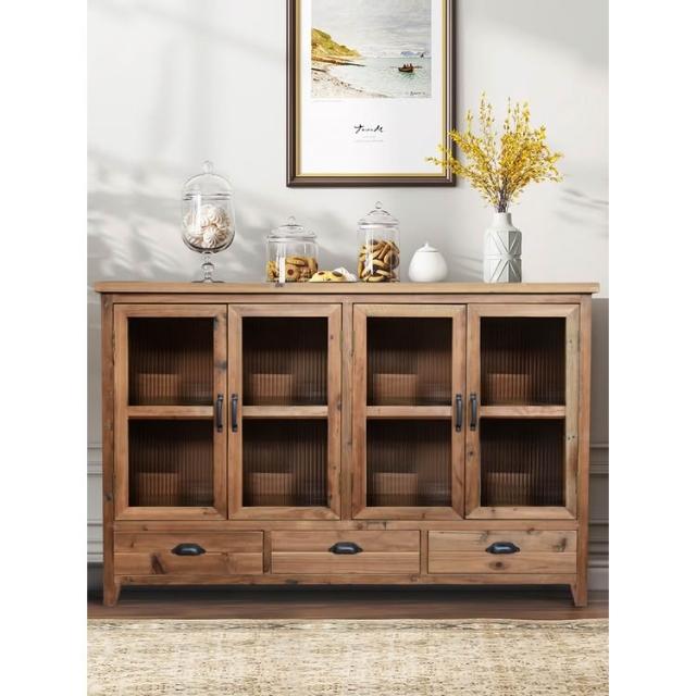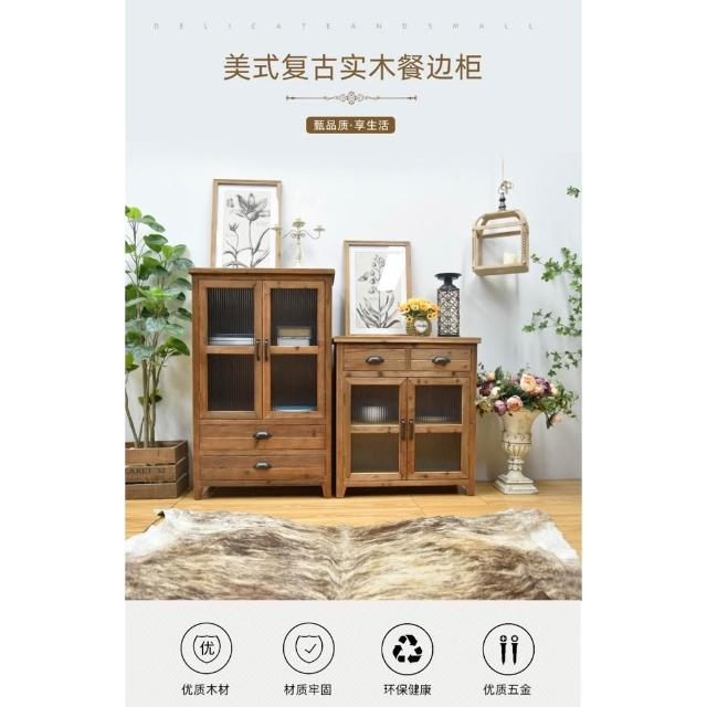 美式實木柜子法式餐邊櫃原木色復古儲物櫃做舊客廳牆邊茶水矮櫃儲物櫃 收納櫃 置物櫃 柜子