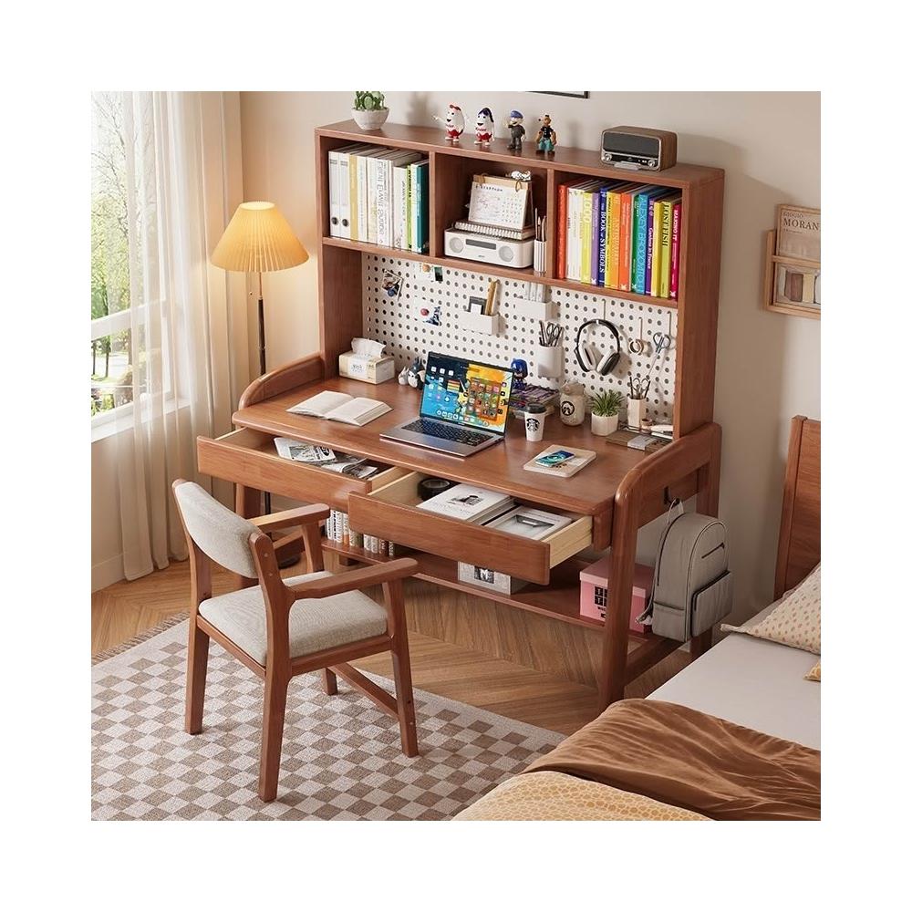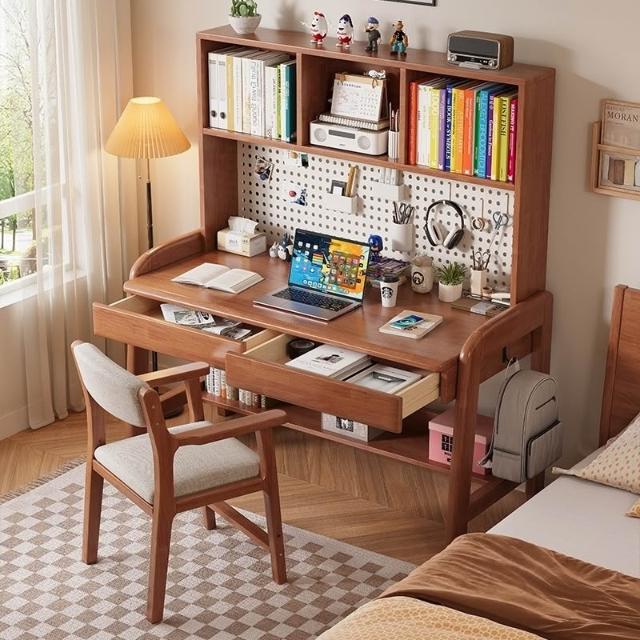 免運/可開發票/實木書房辦公桌臥室小戶型學生學習桌洞洞板一體寫字桌可調節升降高度家用學習桌子書桌電腦桌辦公桌工作臺