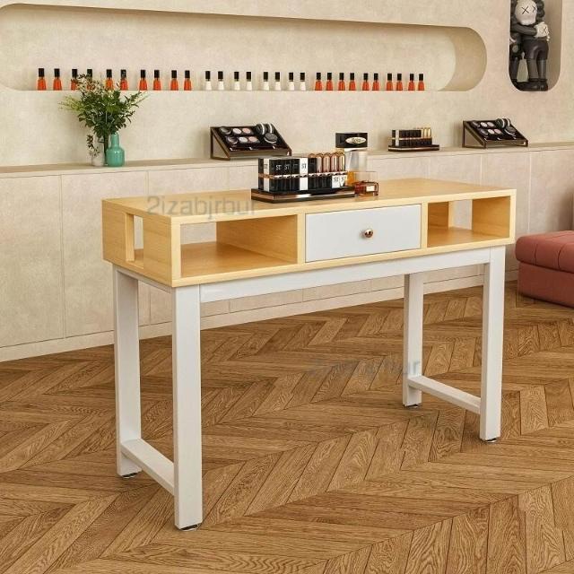 林深家具美甲桌 單人雙人中式美甲臺 簡約風收納抽屜雙層修甲臺 經濟型化妝桌 美甲 長桌 美甲桌 客廳桌子 長桌子