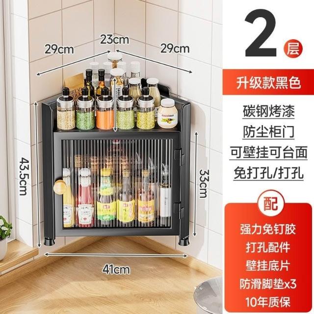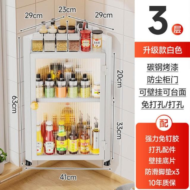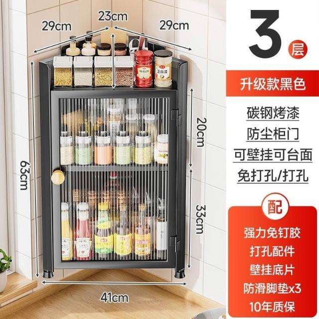 林深家具收納櫃/廚房帶門三角調料置物架壁掛調味料調味品油鹽醬醋轉角收納櫃多層08ttcbun2x