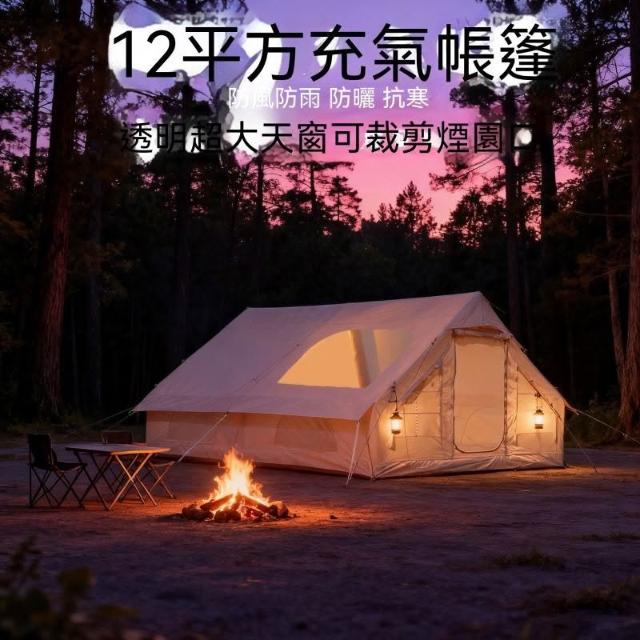 林深家具12平方充氣大帳篷透明天窗露營帳篷充氣式420D牛津布煙囪充氣帳篷(充氣帳篷/露營帳篷/拋帳/野餐帳篷/遮陽