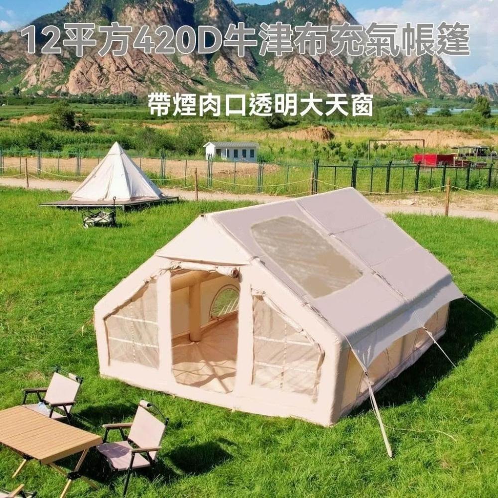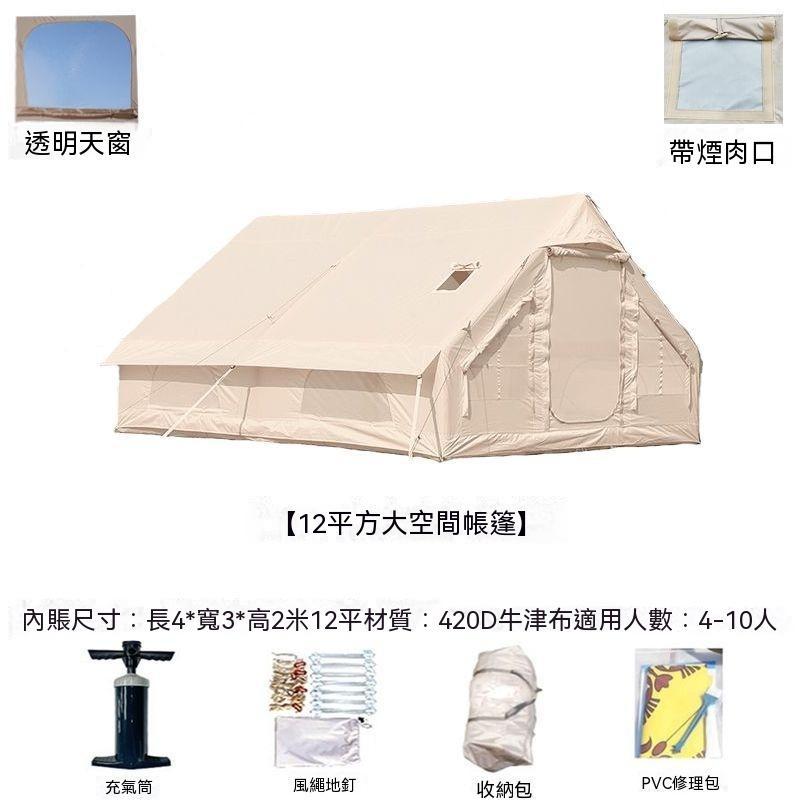 林深家具12平方充氣大帳篷透明天窗露營帳篷充氣式420D牛津布煙囪充氣帳篷(充氣帳篷/露營帳篷/拋帳/野餐帳篷/遮陽