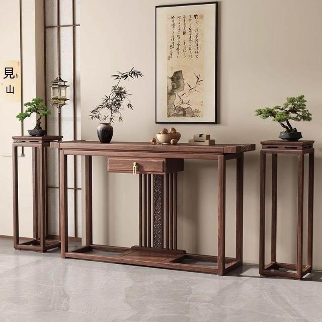 林深家具2026新款新中式實木玄關櫃宋式美學南美胡桃木入戶門神臺條案客廳家用供桌(神明桌/供桌/祖先桌/佛桌/神桌)