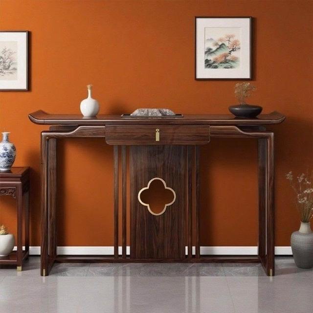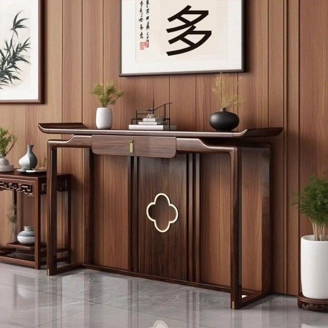 林深家具2026新款新中式烏金木玄關桌全實木入戶正對門靠牆條案神臺供桌香案玄關櫃(神明桌/供桌/祖先桌/佛桌/神桌)