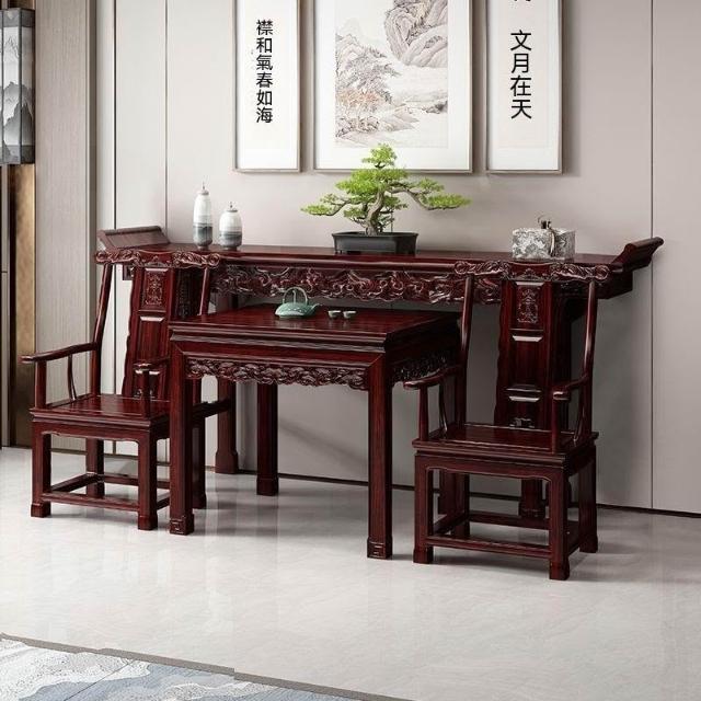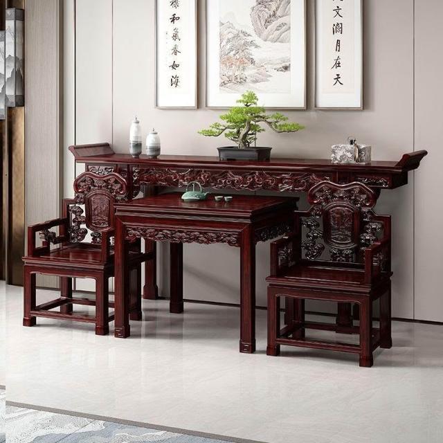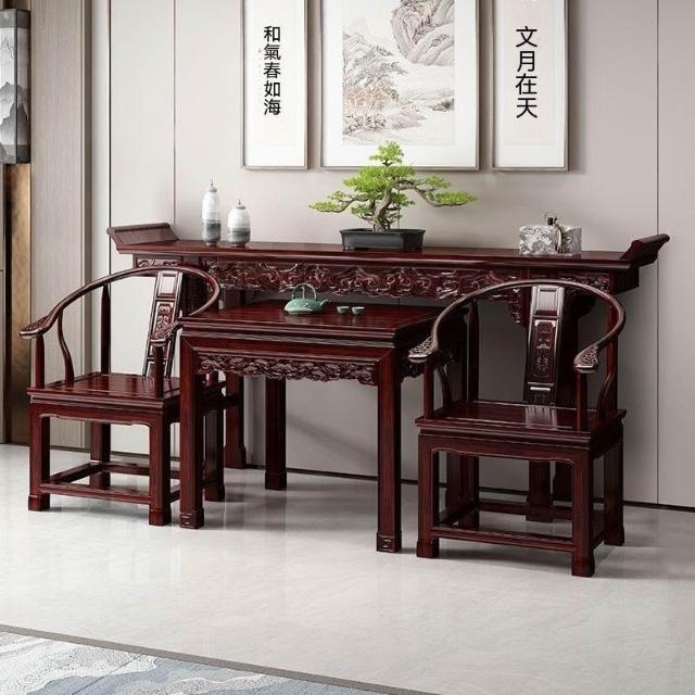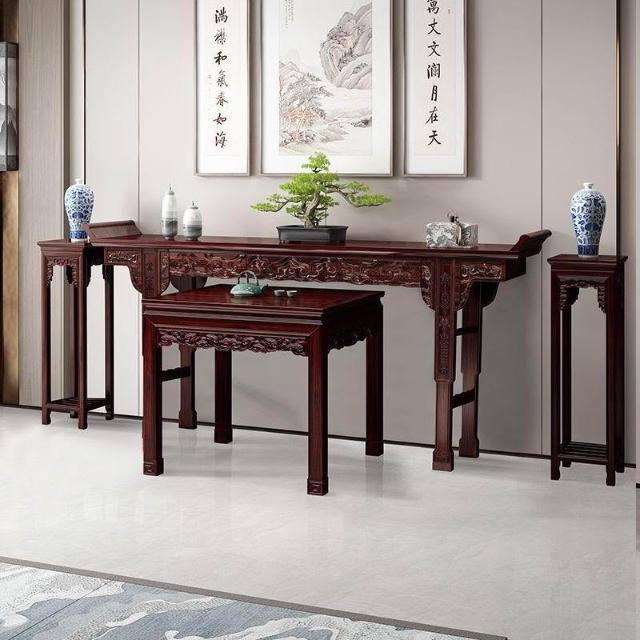 林深家具2026新款全實木中堂六件套客廳條案供桌中堂條桌堂屋八仙桌長條桌經典組合(神明桌/供桌/祖先桌/佛桌/神桌)