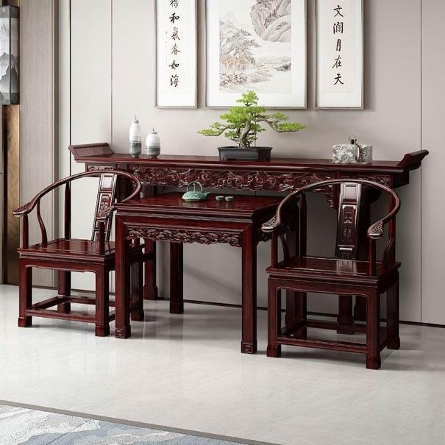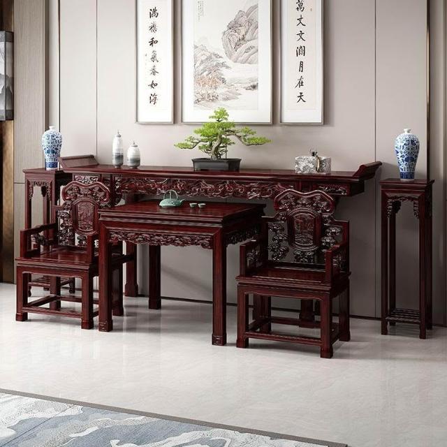 林深家具2026新款全實木中堂六件套客廳條案供桌中堂條桌堂屋八仙桌長條桌經典組合(神明桌/供桌/祖先桌/佛桌/神桌)