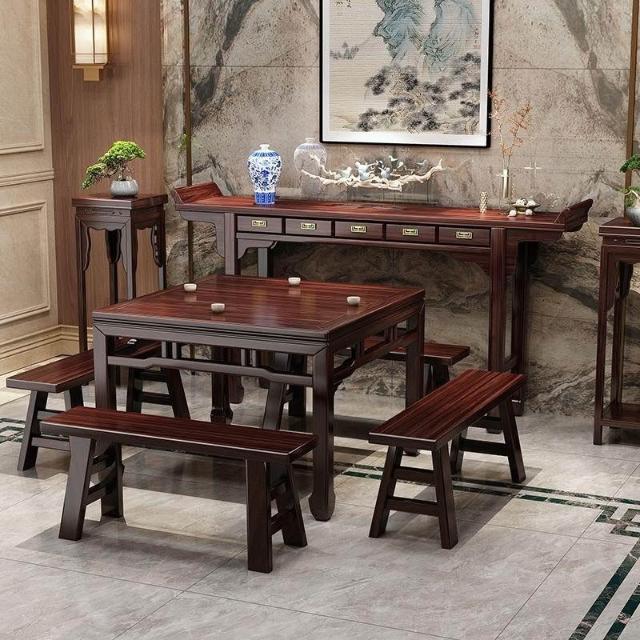 林深家具2026新款珍樂美新中式烏金木實木神臺八仙桌六件套桌農村中堂條桌家用供桌(神明桌/供桌/祖先桌/佛桌/神桌)