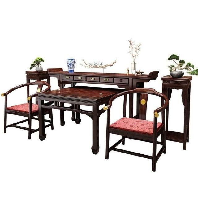 林深家具2026新款珍樂美新中式烏金木實木神臺八仙桌六件套桌農村中堂條桌家用供桌(神明桌/供桌/祖先桌/佛桌/神桌)