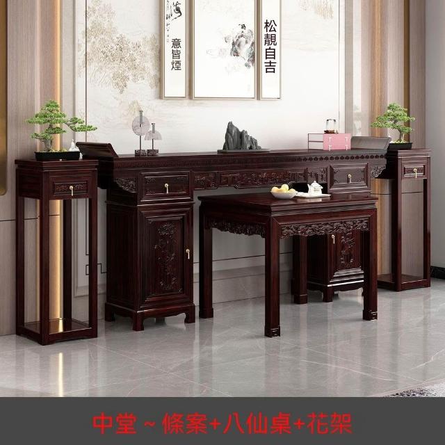 林深家具2026新款六件套條案農八仙桌中堂六件套中堂供桌四件套翹頭桌條几(神明桌/供桌/祖先桌/佛桌/神桌)