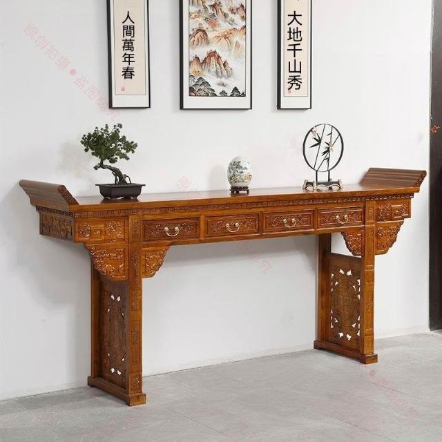 林深家具2026新款北方老榆木中堂六件套供桌農村堂屋條案客廳中式全實木仿古八仙桌(神明桌/供桌/祖先桌/佛桌/神桌)