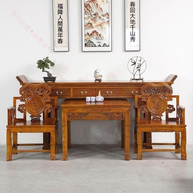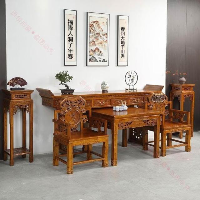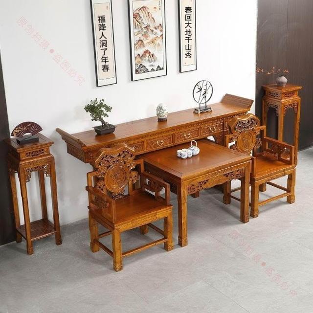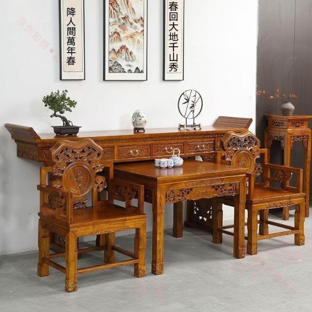 林深家具2026新款北方老榆木中堂六件套供桌農村堂屋條案客廳中式全實木仿古八仙桌(神明桌/供桌/祖先桌/佛桌/神桌)