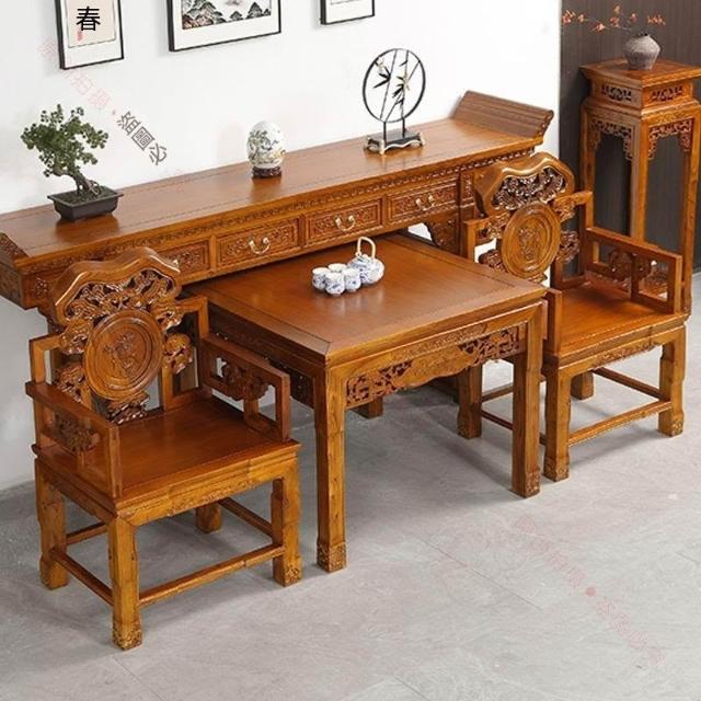 林深家具2026新款北方老榆木中堂六件套供桌農村堂屋條案客廳中式全實木仿古八仙桌(神明桌/供桌/祖先桌/佛桌/神桌)