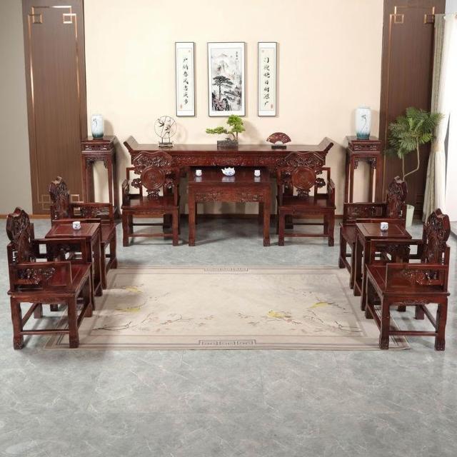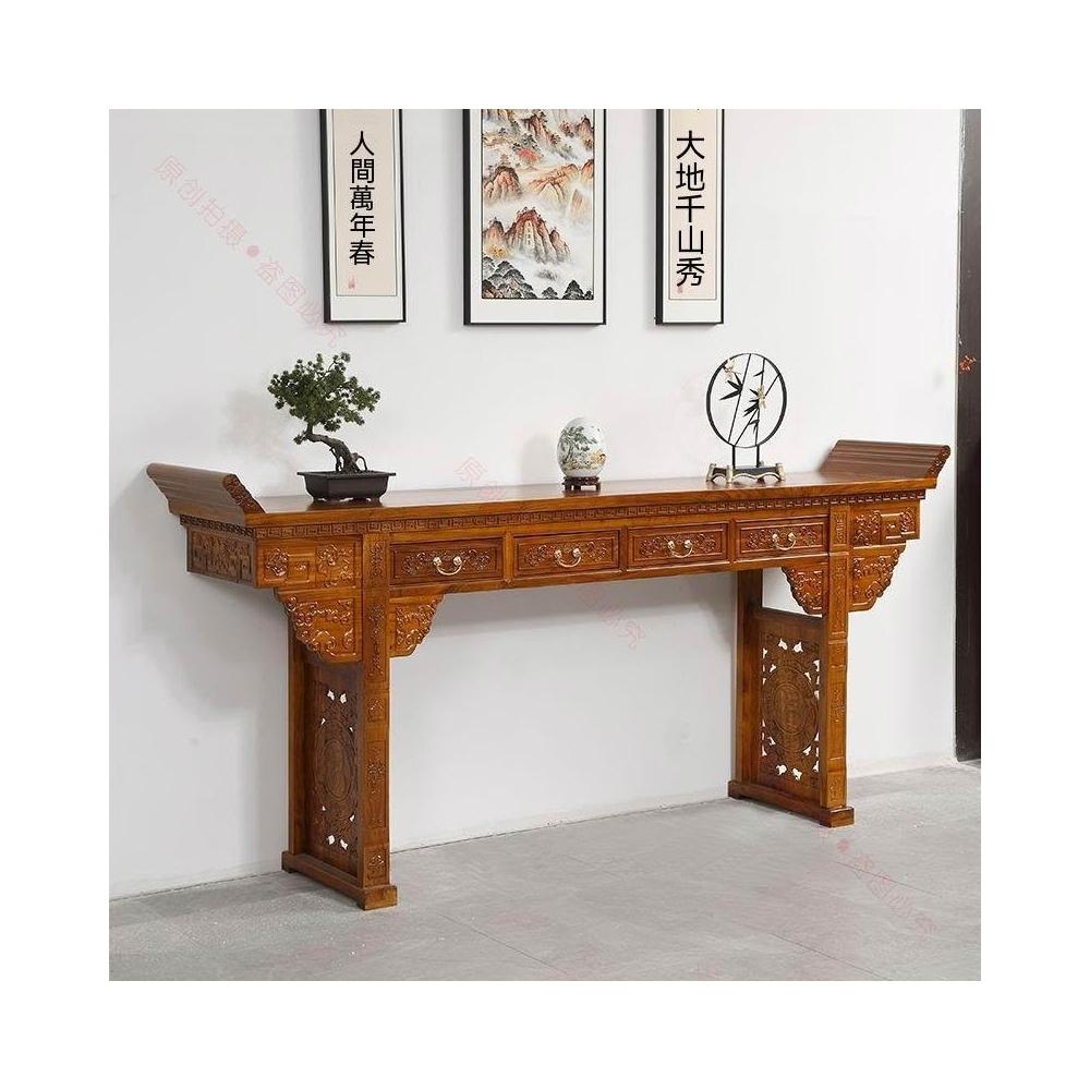 林深家具2026新款北方老榆木中堂六件套供桌農村堂屋條案客廳中式全實木仿古八仙桌(神明桌/供桌/祖先桌/佛桌/神桌)