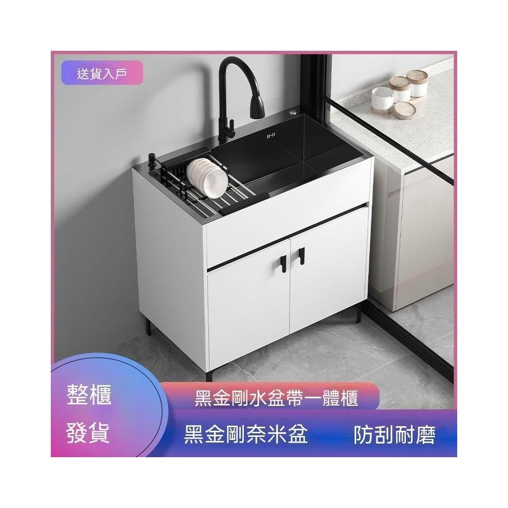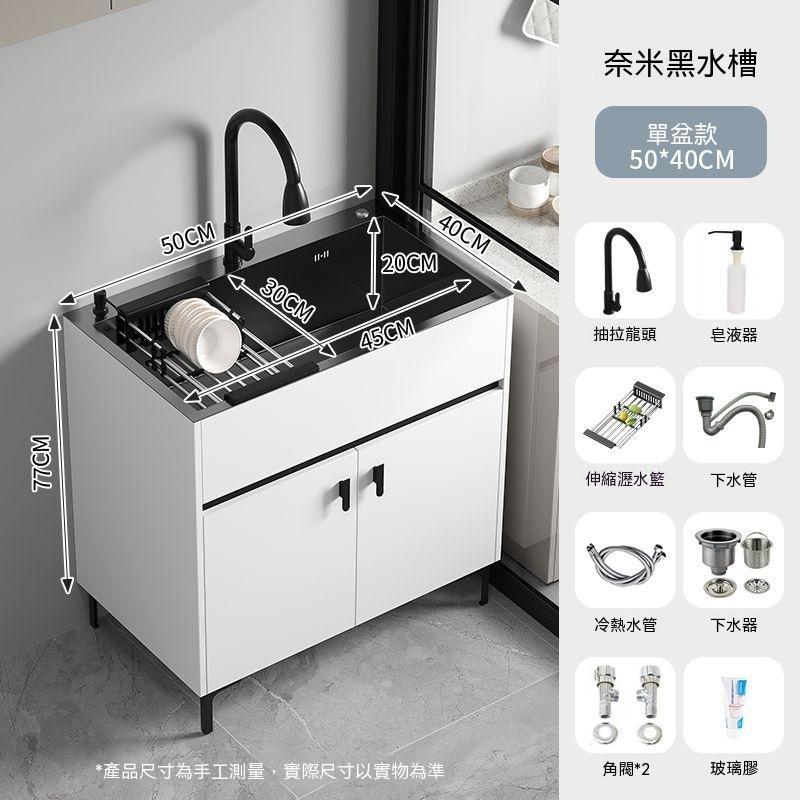 林深家具梳理台/家用廚房不鏽鋼水槽帶一體櫃出租房單雙槽洗碗池簡易洗菜盆帶櫥櫃/廚房流理台櫃/廚具/水槽櫃/廚房櫃