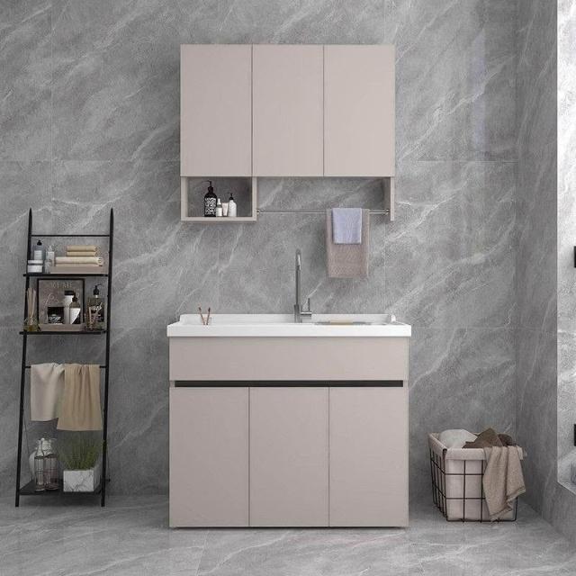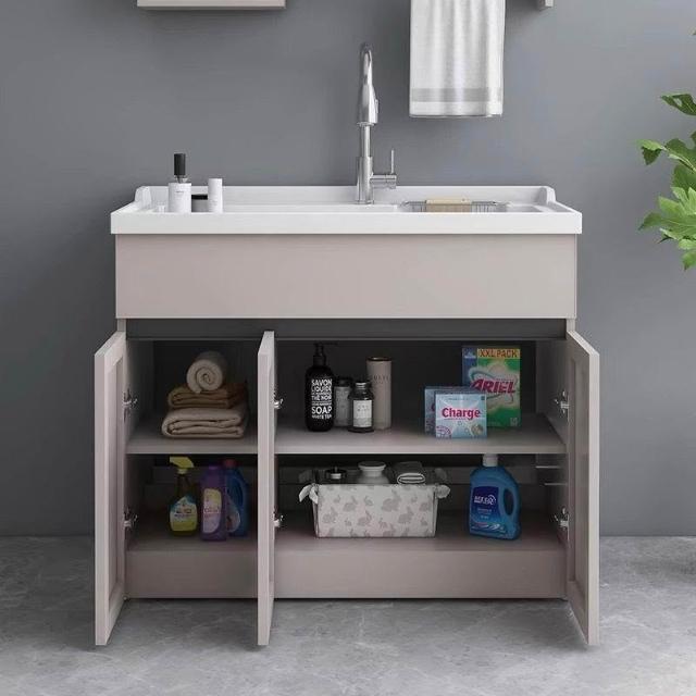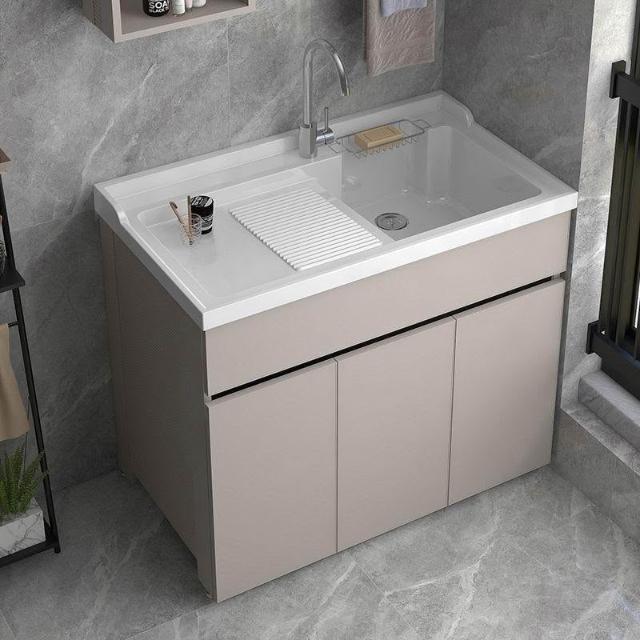 林深家具梳理台/蜂窩鋁加厚陽臺洗衣池洗手盆帶搓板水槽一體家用落地式浴室櫃簡約/廚房流理台櫃/廚具/水槽櫃/廚房櫃