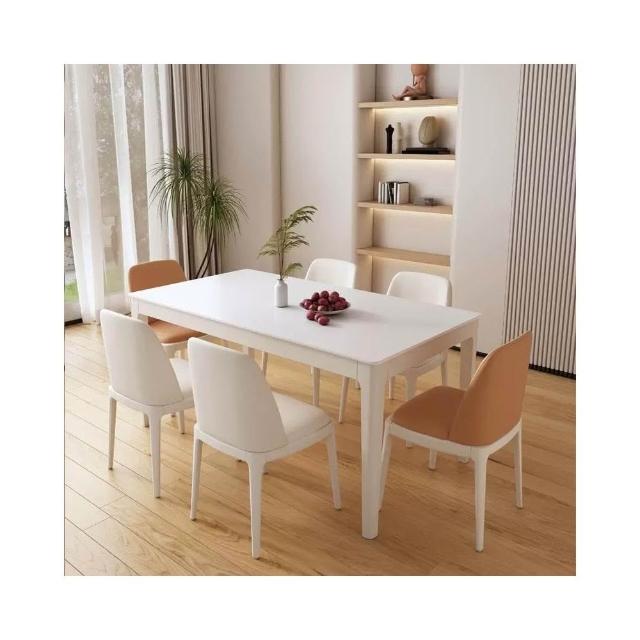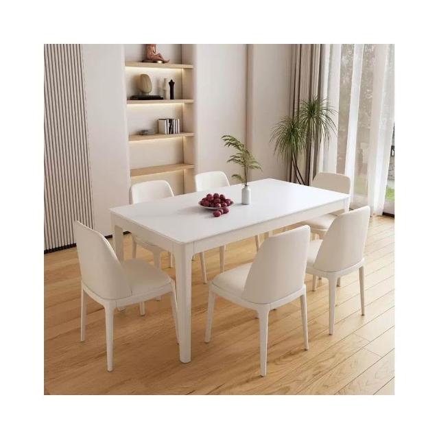 免運法式奶油風純白岩板實木餐桌椅家用小戶型吃飯桌子現代簡約長方型 桌子 書桌 餐桌