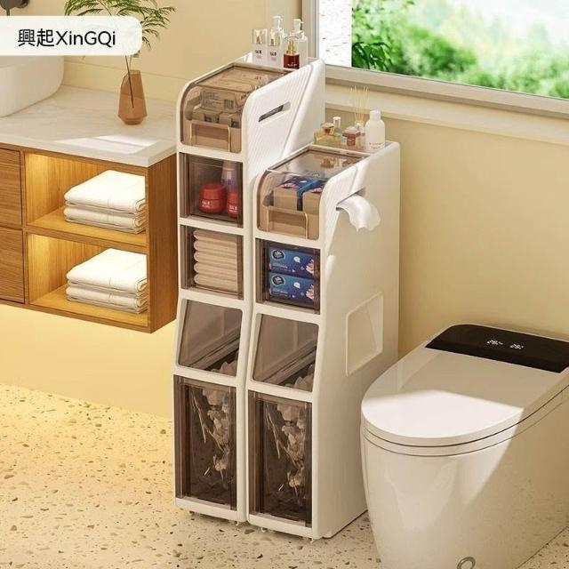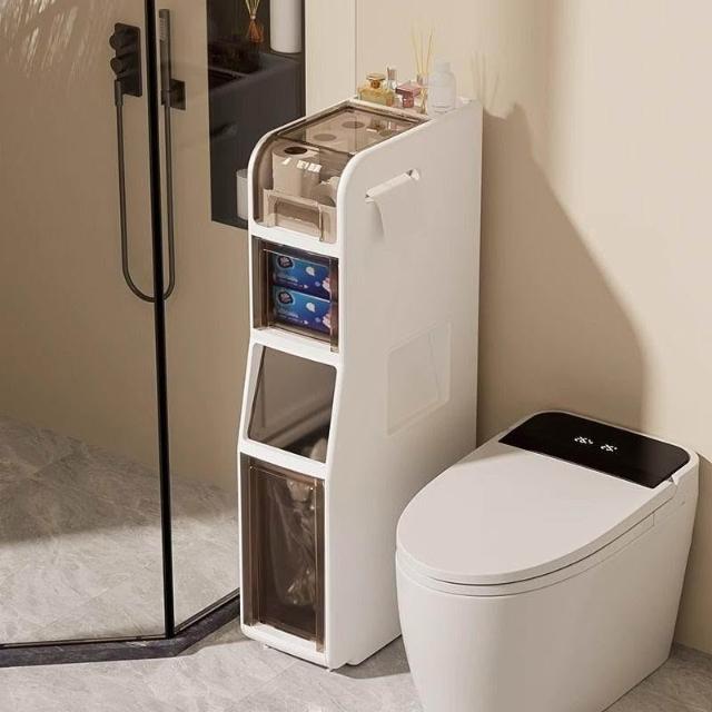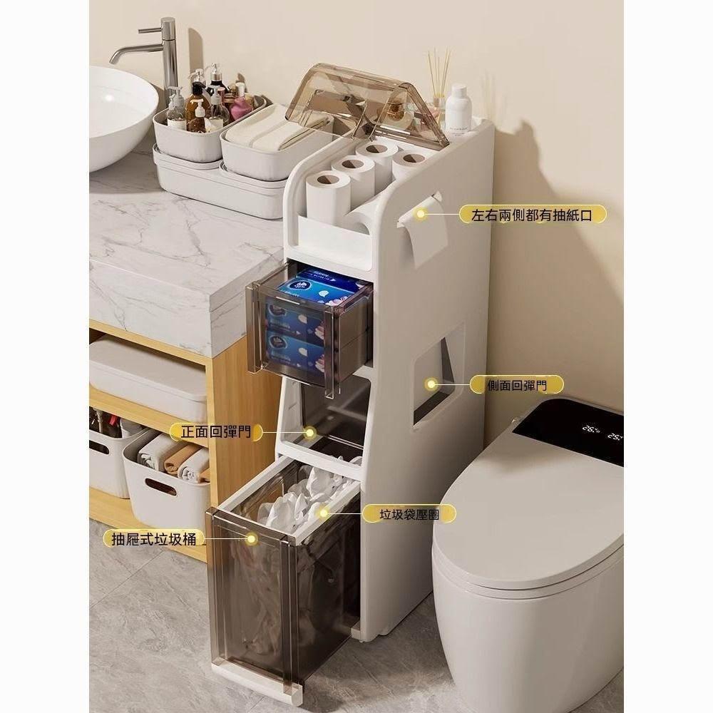 林深家具衛生間夾縫收納櫃自帶垃圾桶浴室抽屜式超窄縫隙櫃廁所馬桶側邊櫃/窄櫃/縫隙/窄縫/夾縫收納櫃/夾縫櫃/縫隙櫃