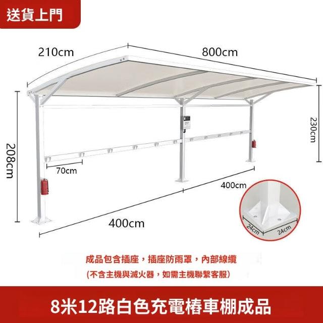 林深家具2026新款/ 膜結構小區電瓶車停車棚電動車充電樁遮陽雨棚6/8米自行車戶外蓬 (抗風遮陽棚/停車篷/遮陽帳)
