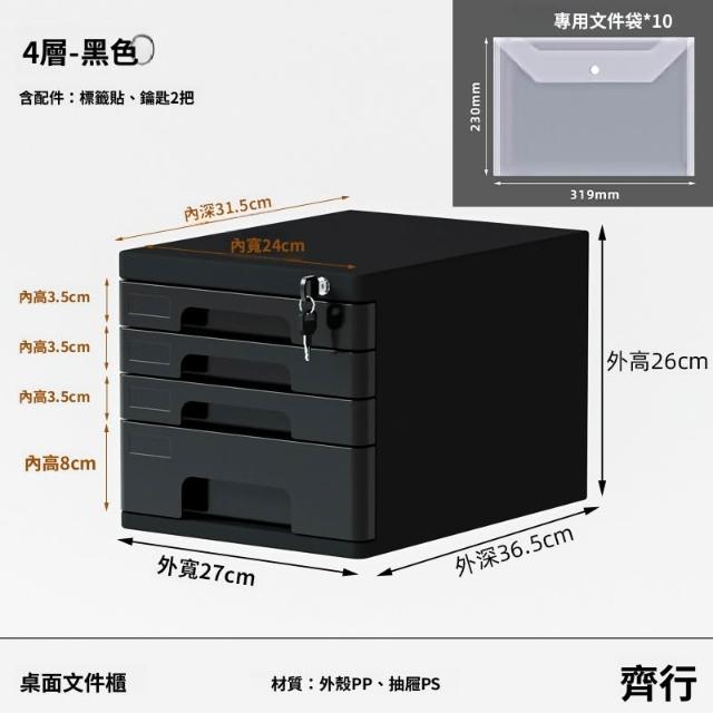 林深家具/2026新款 帶鎖文件櫃桌面收納盒抽屜式a4資料櫃塑料加厚防塵防盜重要文件 /桌上收納櫃/文件櫃/辦公桌收納