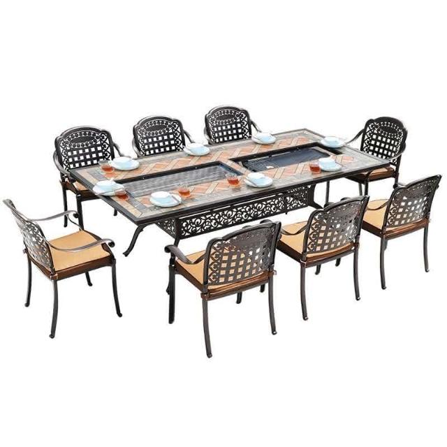欣悅優選定製戶外燒烤桌椅傢用露臺多功能燒烤桌子室外庭院鑄鋁燒烤桌