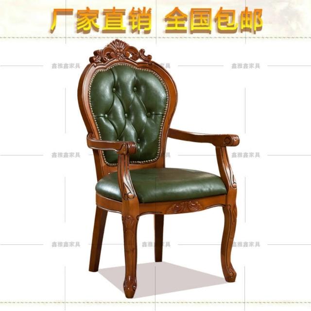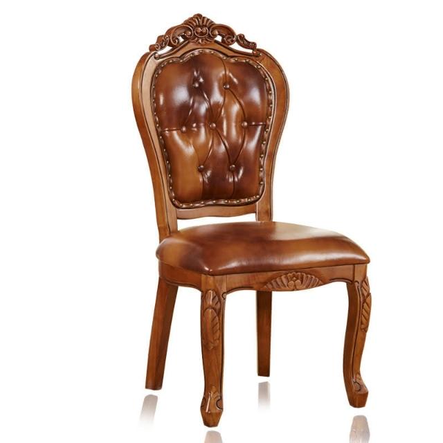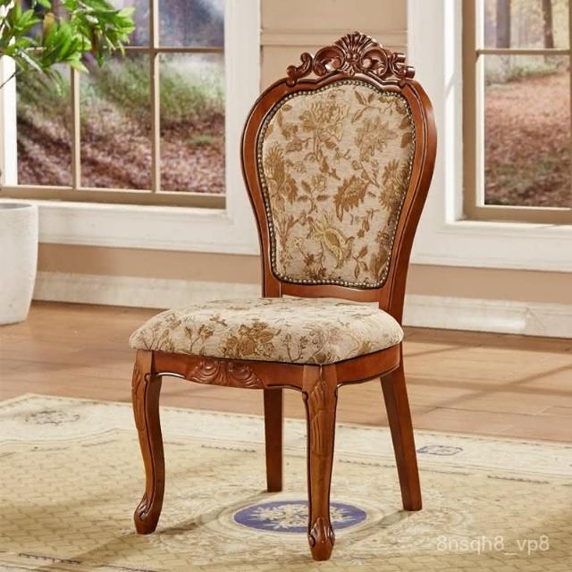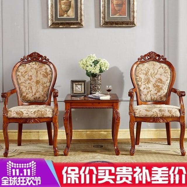 現貨免運 歐式實木餐椅 新古典家用椅鵰花真皮麻將扶手椅美式靠背酒店椅子