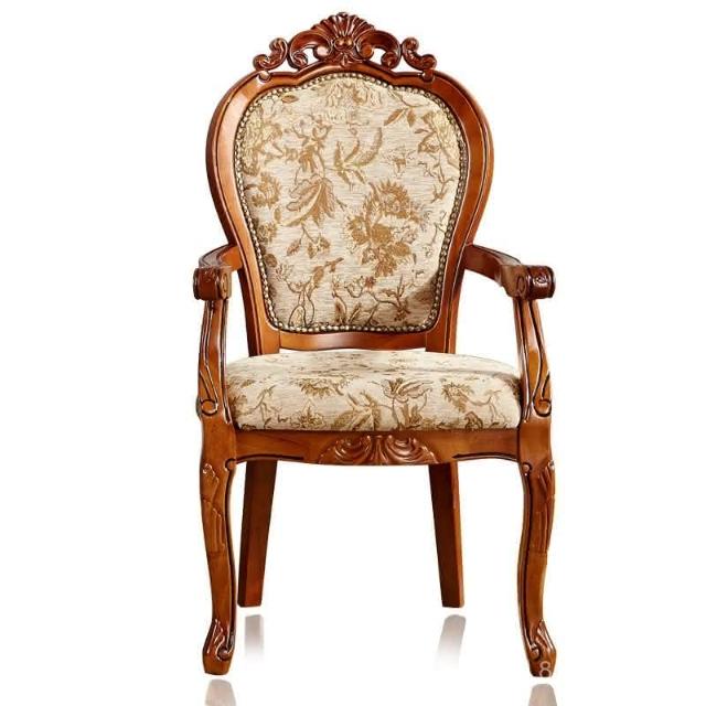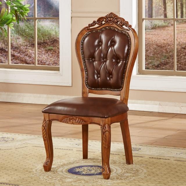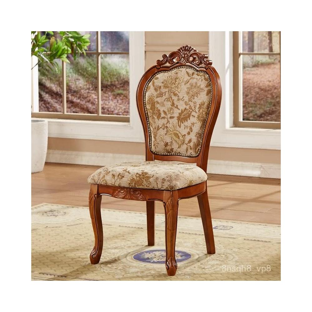 現貨免運 歐式實木餐椅 新古典家用椅鵰花真皮麻將扶手椅美式靠背酒店椅子