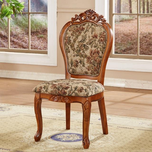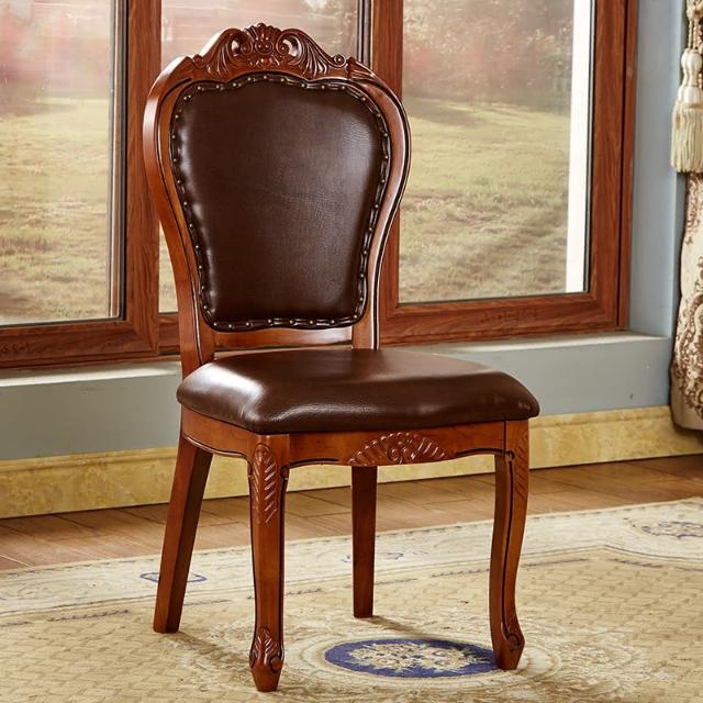 現貨免運 歐式實木餐椅 新古典家用椅鵰花真皮麻將扶手椅美式靠背酒店椅子