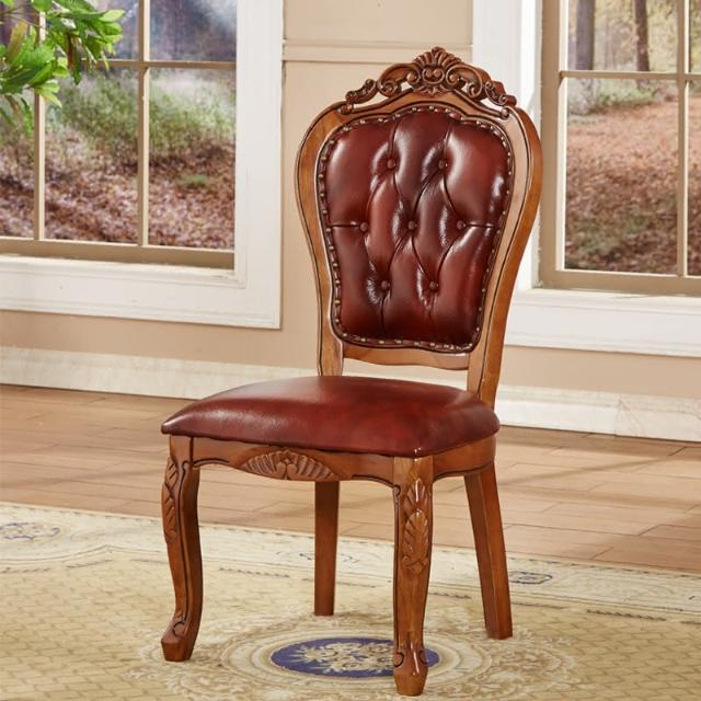 現貨免運 歐式實木餐椅 新古典家用椅鵰花真皮麻將扶手椅美式靠背酒店椅子
