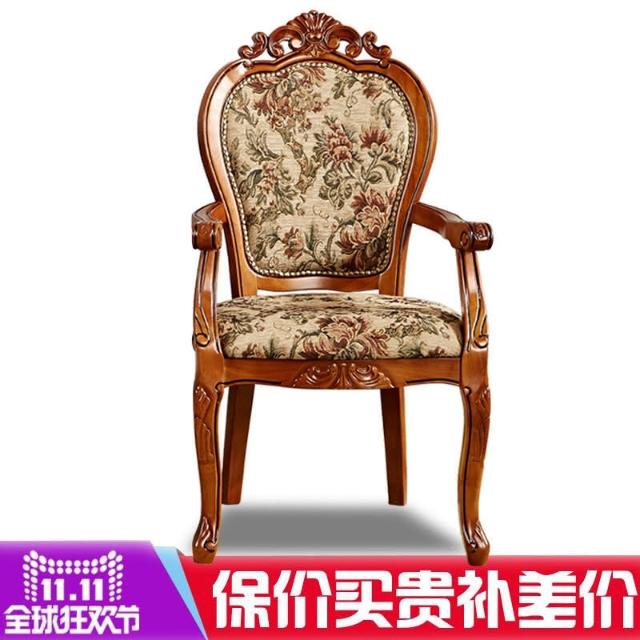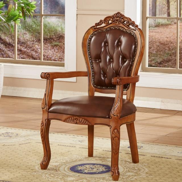 現貨免運 歐式實木餐椅 新古典家用椅鵰花真皮麻將扶手椅美式靠背酒店椅子