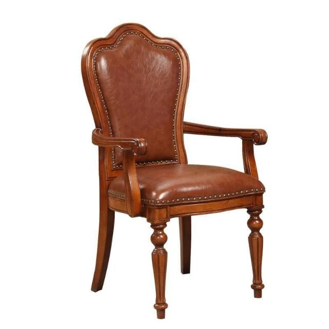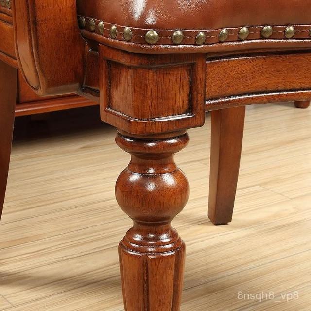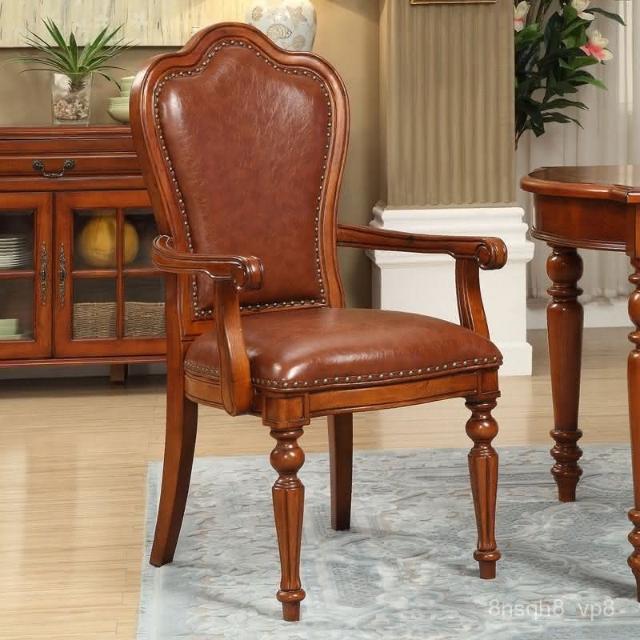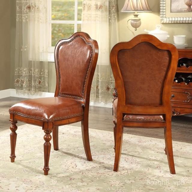 現貨免運 歐式真皮書椅 餐廳皮座椅 書房書椅 美式全實木餐椅 複古懷舊椅子