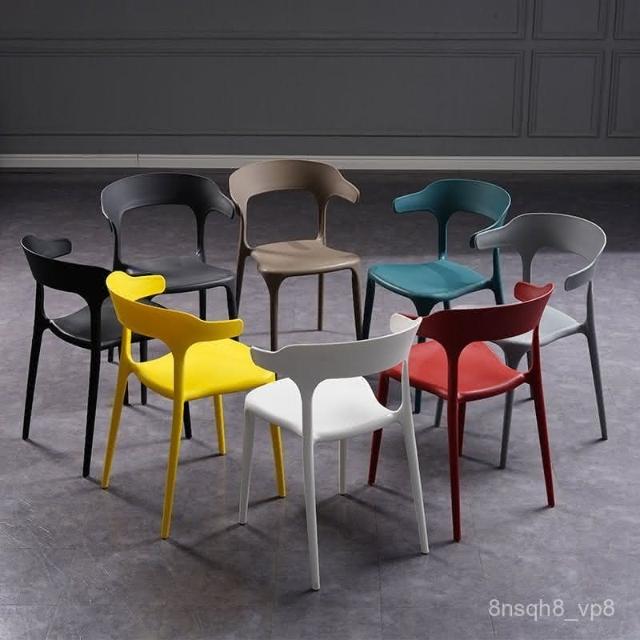 廠傢直發 免稅免運 塑料牛角椅子傢用簡約靠背成人加厚餐椅休閒洽談餐廳椅批髮北歐