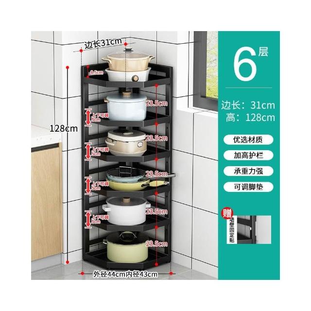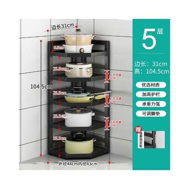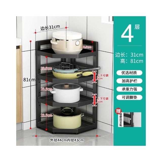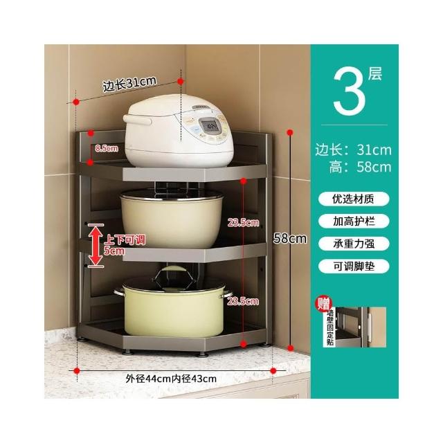 廚房置物架 落地多層鍋具架 槍灰色轉角三腳架 收納儲物架子 放電飯鍋架 廚房收納架 雜物收納架 三角置物架kij