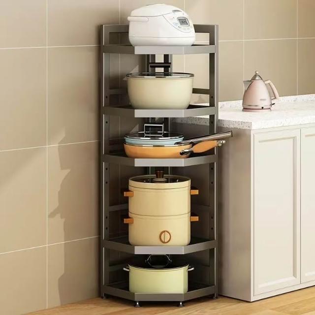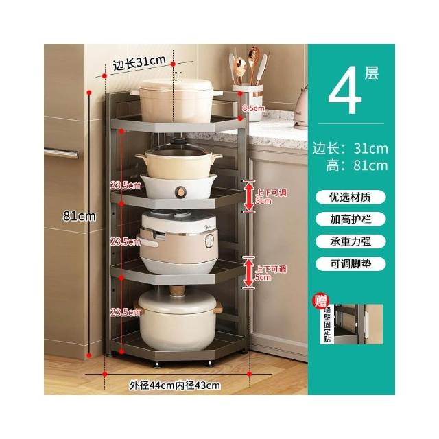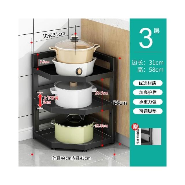 廚房置物架 落地多層鍋具架 槍灰色轉角三腳架 收納儲物架子 放電飯鍋架 廚房收納架 雜物收納架 三角置物架kij