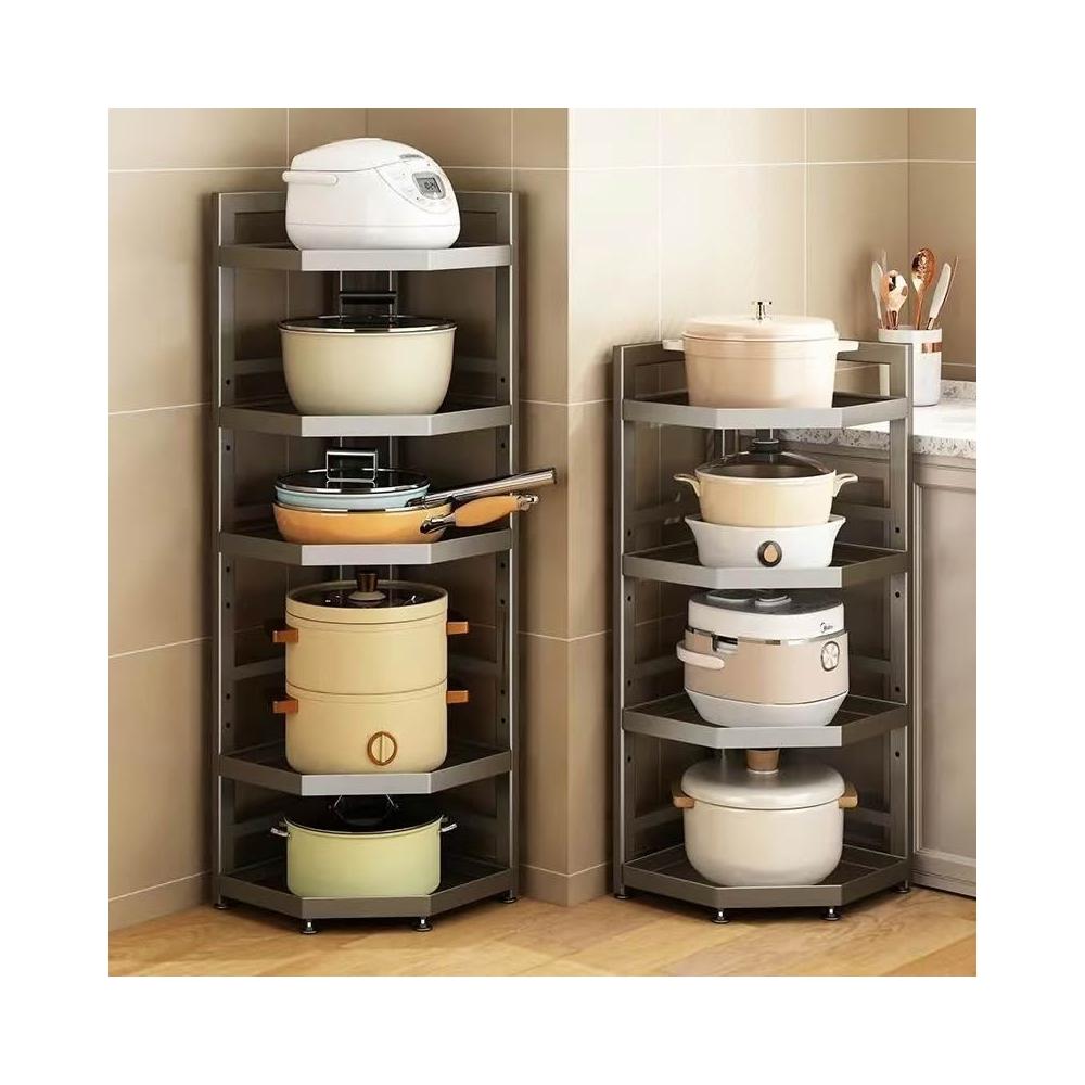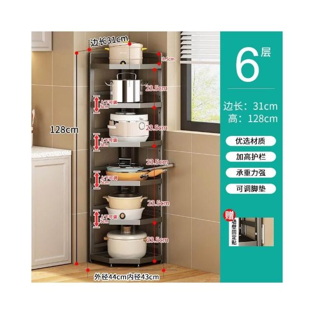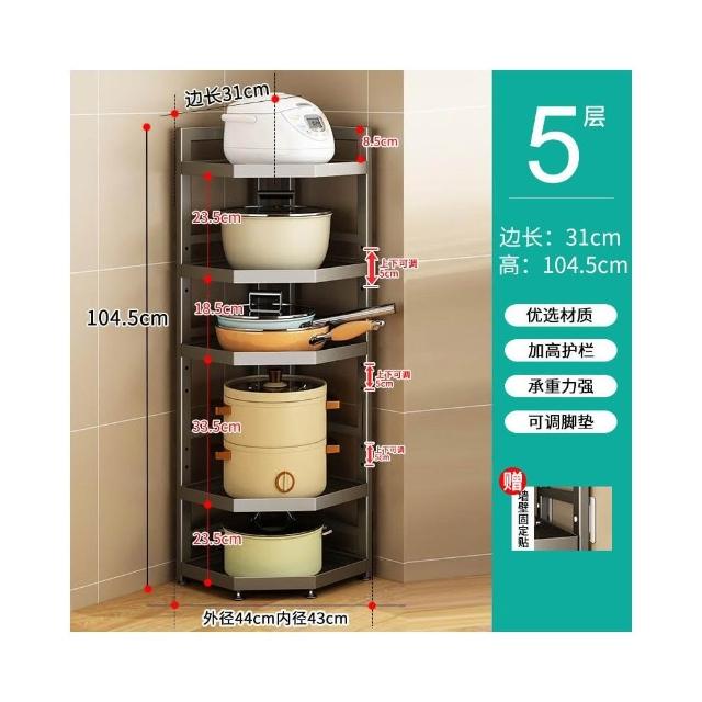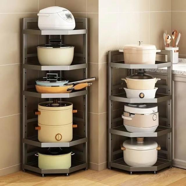 廚房置物架 落地多層鍋具架 槍灰色轉角三腳架 收納儲物架子 放電飯鍋架 廚房收納架 雜物收納架 三角置物架kij
