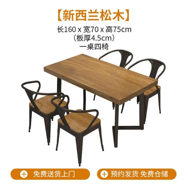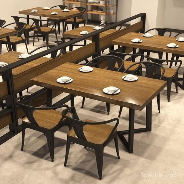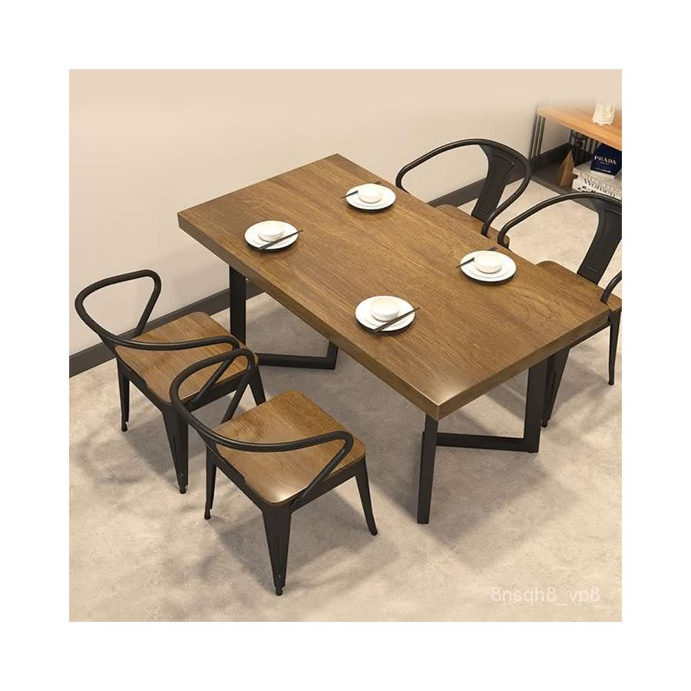 廠家免運 工業風實木餐桌椅組閤商用餐廳奶茶店咖啡廳飯店麵館實木四人桌子