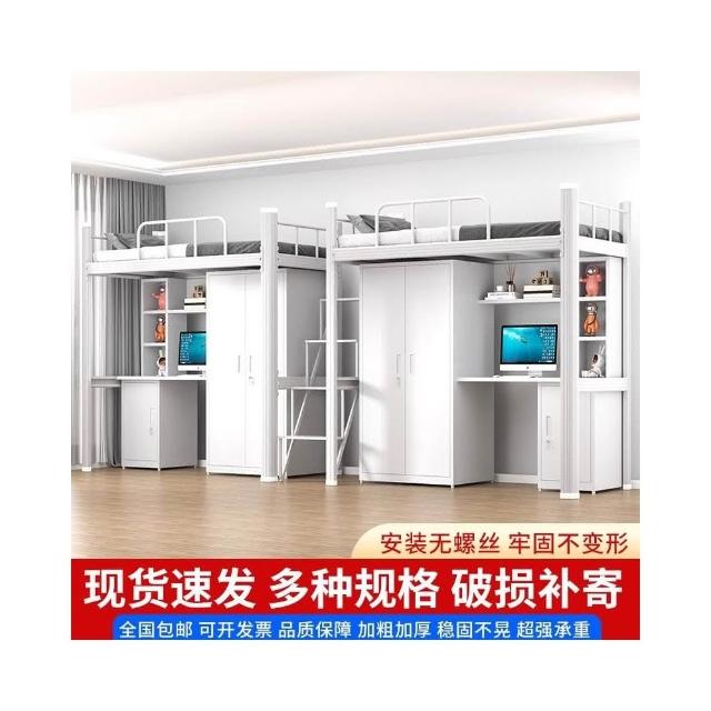 上床下桌组合铁艺床学生宿舍高架床落地爬梯公寓床员工寝室单人床